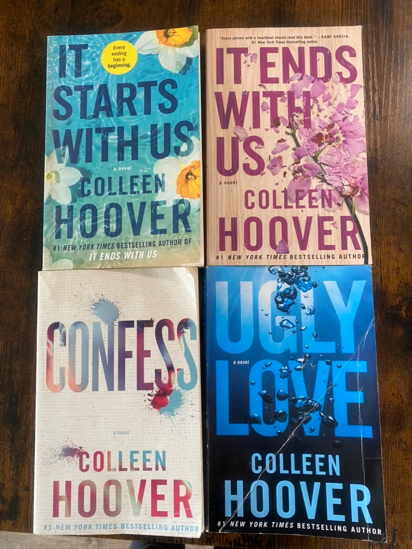 This listing is for a set of four Colleen Hoover novels, including It Starts With Us, It Ends With Us, Confess, and Ugly Love.