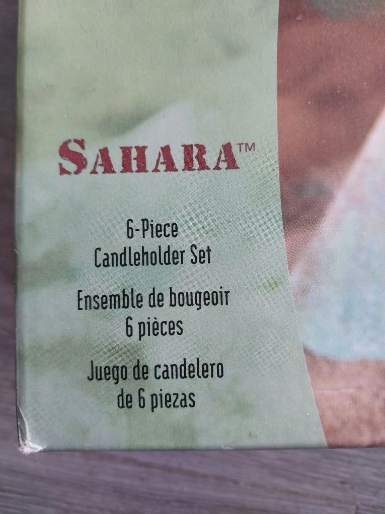*Pick up and cash ONLY. *Fixed price. No trades. *Location on ad. New in box. Sahara Glass and Metal six-piece candleholder set. Glass candle holders with metal stands. Elegant design. Brand new in box. Would make a great housewarming gift!