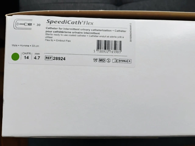 Brand new and sealed, none of the packs have been opened. Coloplast Speedicath Flex Catheters, box of 30, paid $265, selling for $150. Cash only, pickup downtown.