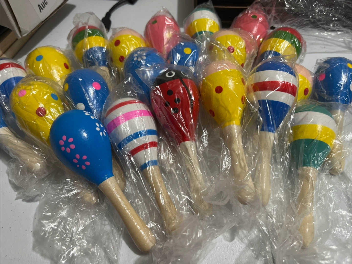 Selling in sets of 5 Great for Babies and Toddlers These colourful wooden maracas are perfect for little ones to explore music and rhythm! They're lightweight and easy for small hands to hold. Great for introducing your child to the joy of music.
