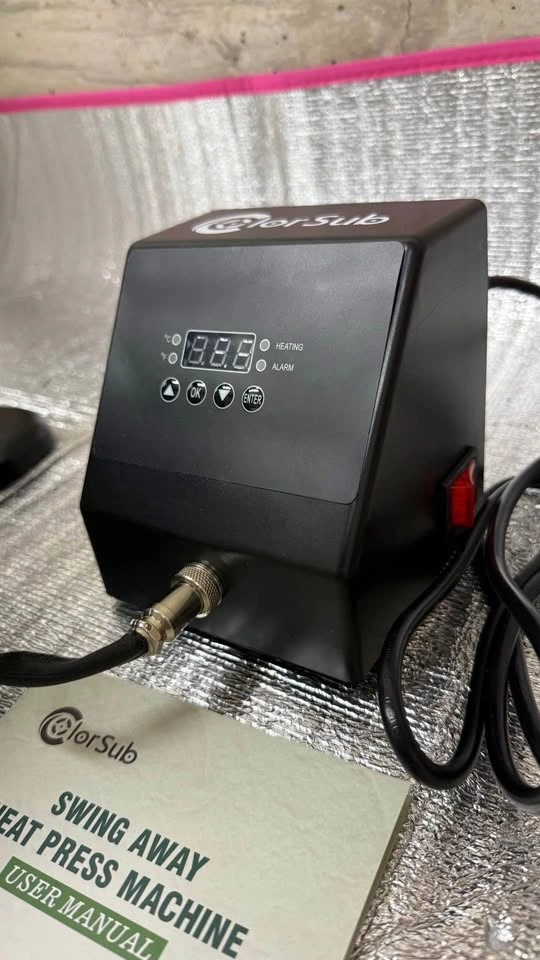 Brand new, never used. Minor cosmetic damage: plastic side panel cracked during transport. Functionality is not affected — machine works perfectly. 3-in-1 combo heat press for t-shirts, sublimation, and heat transfer. Comes with all original accessories and packaging. Price: $80 CAD (cash preferred) Pick up in Riverbend, Calgary Retail price: ~$135 CAD