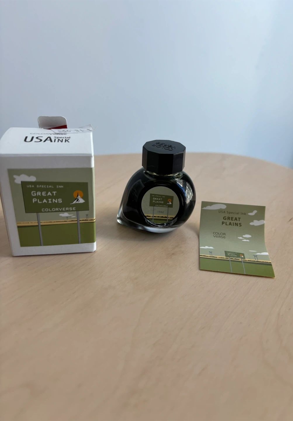 Calling all fountain pen enthusiasts 🖋️ Add a bottle of Colorverse fountain pen ink - Great Plains to your collection! It's a 15ml bottle, barely used and comes with the original box and stickers. I originally bought it for $18.95 (see photos) and haven’t used the ink since. Pick up would be near St. Lawrence Market. Product details - Colorverse USA Special Ink - 1 bottle (15ml) - Dye based fountain pen ink - RGB colour: 146, 160, 100 - Web colour: #92A064 To see a sample of the ink switch online, you can visit https://torontopenshoppe.com/products/colorverse-fountain-pen-ink-usa-special-edition-great-plains?srsltid=AfmBOopV35mbnulCWbq_ptqffk50myioEEkZZR3aWYALGq62-IYp4ylR