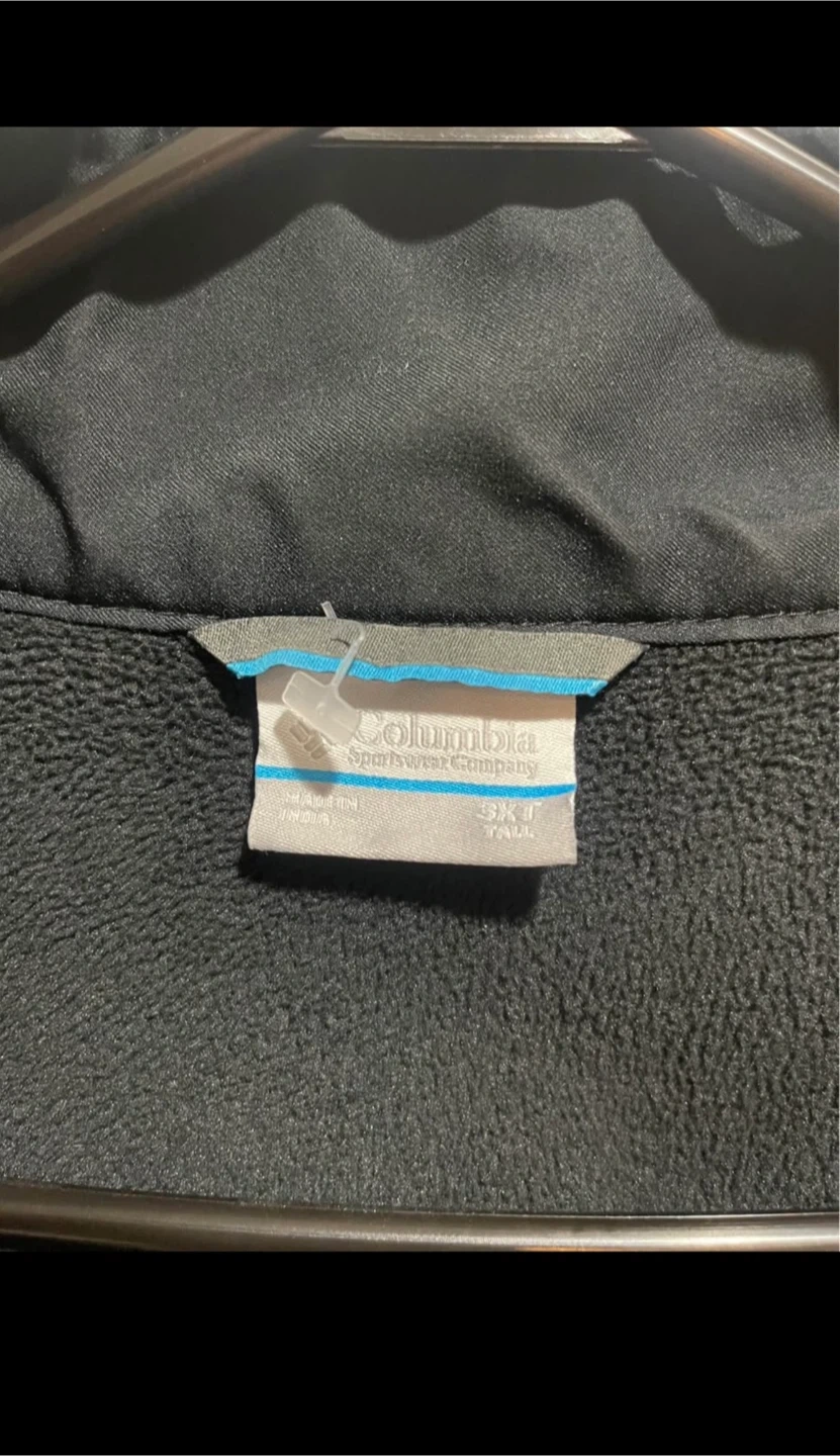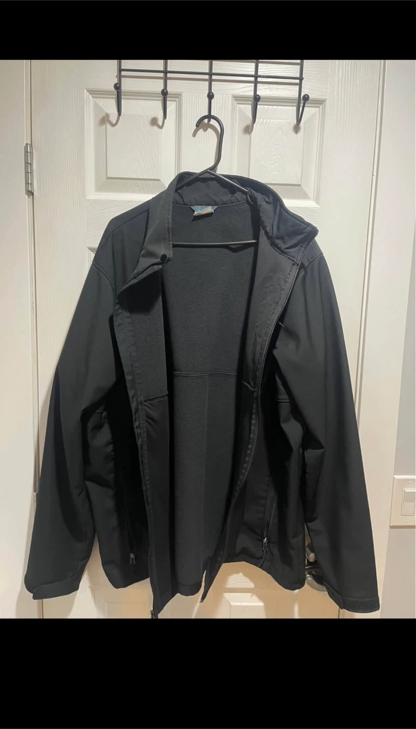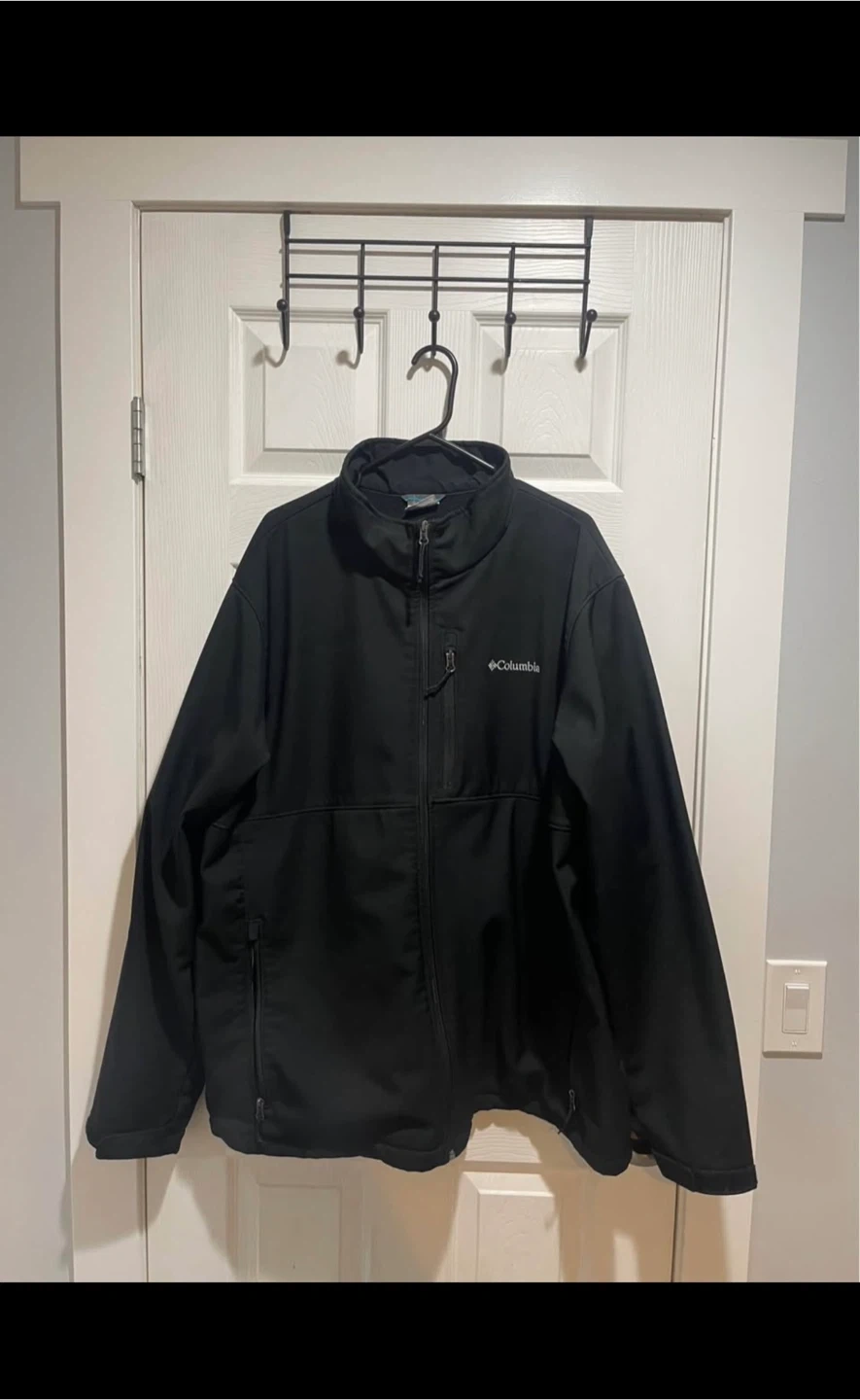 Selling a Columbia softshell jacket in black. It's a size 3XL Tall fits like 2xl. Great for layering or wearing on its own during milder weather!