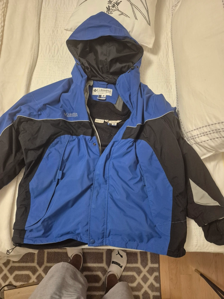 Selling a Columbia jacket in blue and black. It's in great condition and ready for the colder weather. Size is XL