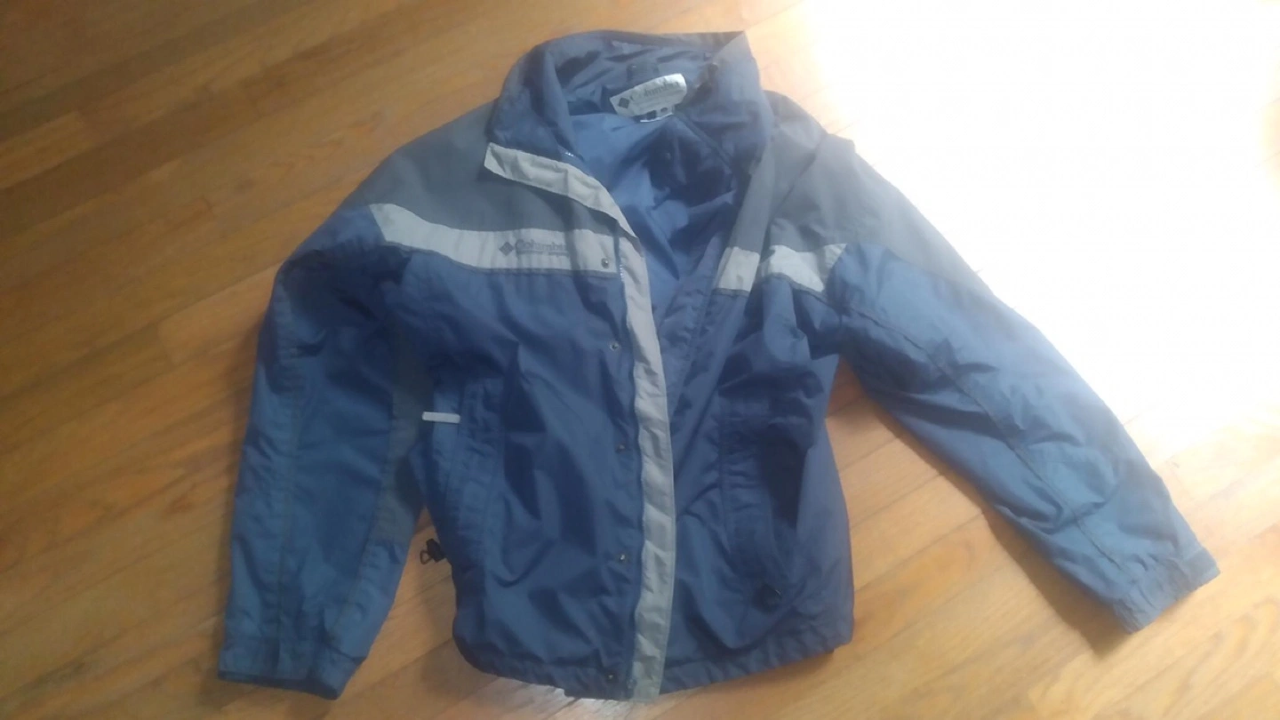 Jacket has broken zipper but still zips up. Selling a Columbia jacket in blue and grey. It's in good condition and ready for a new home! Perfect for those cooler Canadian days.