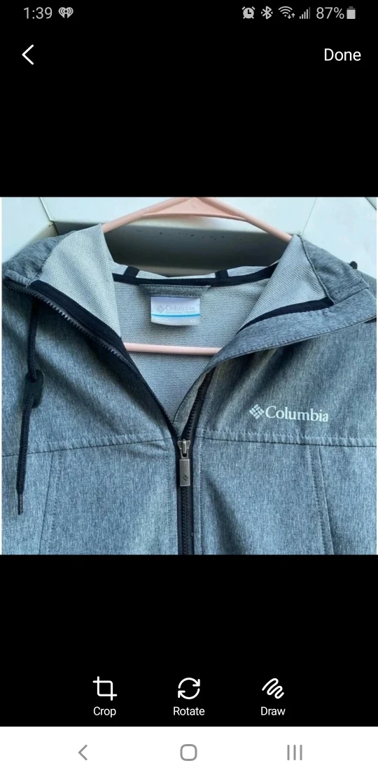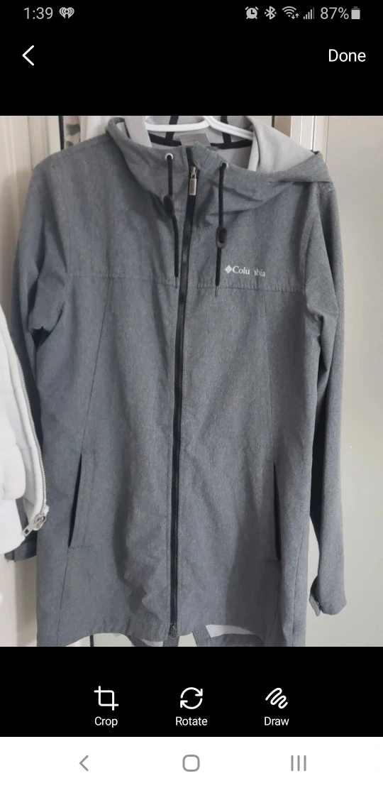 Selling a Columbia hooded rain jacket in size medium. It's a lovely grey colour and in great condition! Perfect for those rainy days.