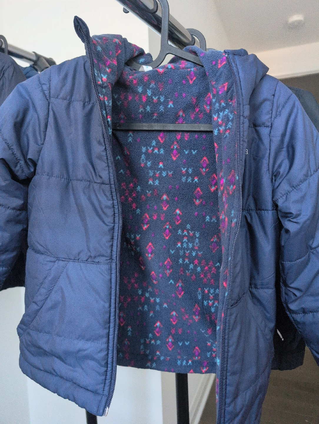 Keep your little one warm with this Columbia reversible puffer jacket! It's a stylish and practical choice for chilly days. The jacket features a reversible design, offering two different looks in one. The outer layer is a solid colour, while the inner layer has a fun pattern. Perfect for keeping your child cozy and looking great!