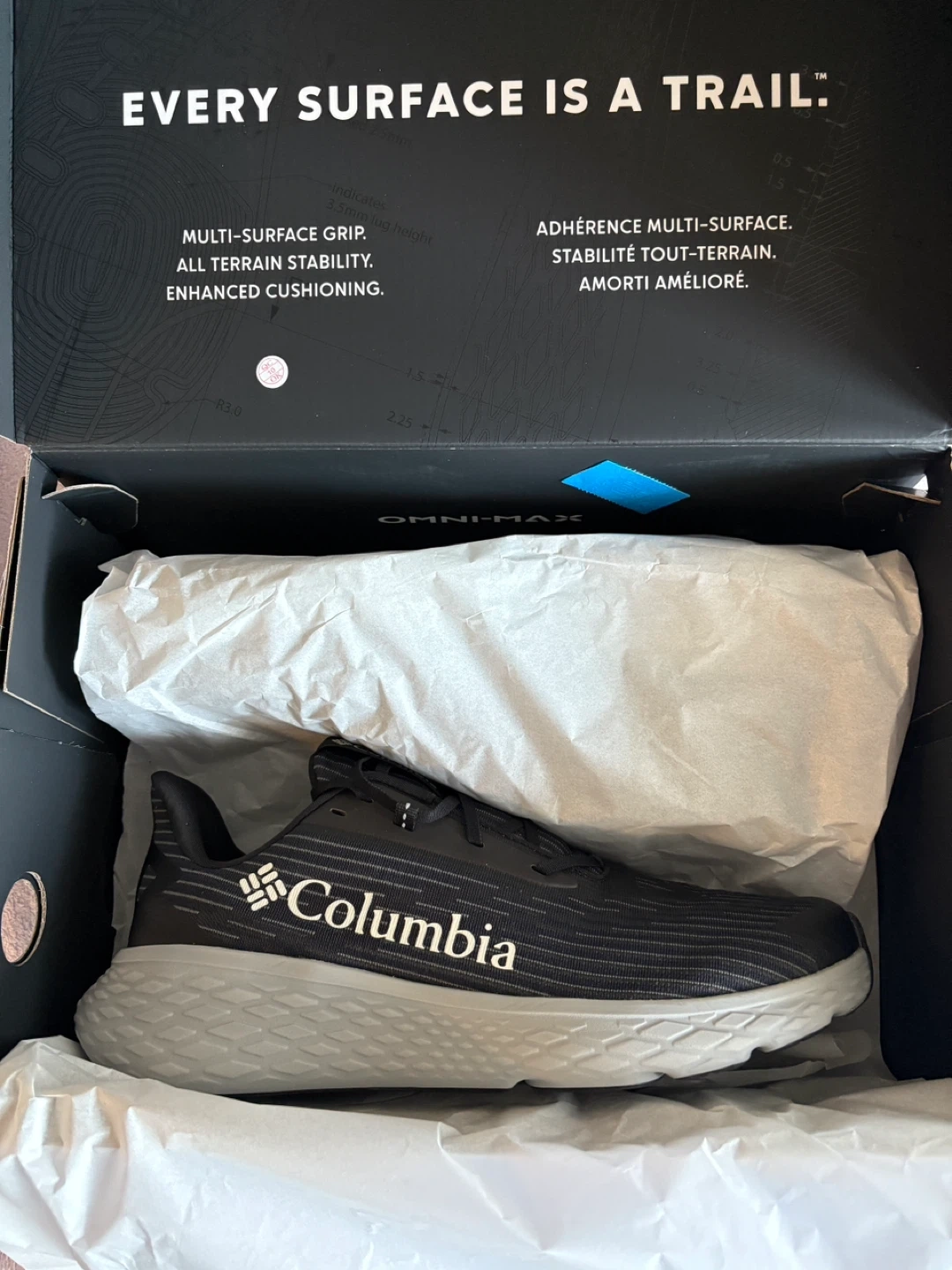 Selling a pair of Columbia Konos Swift trail shoes in men's size 10.5. These shoes feature multi-surface grip and all-terrain stability. They come in the original box!