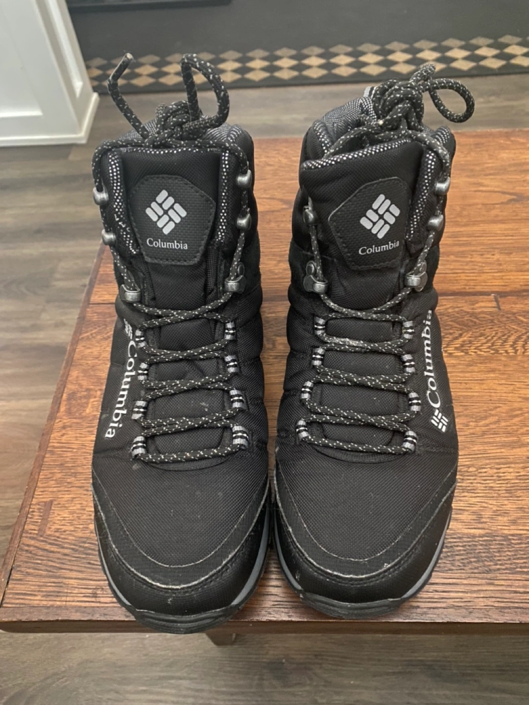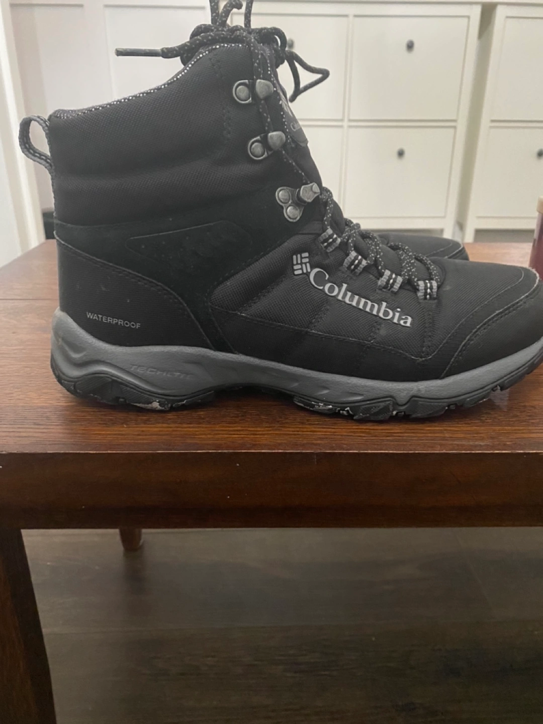 Men's Columbia hiking boots. Waterproof. Size 10 US. Great for outdoor adventures. Lace-up closure. Durable construction.