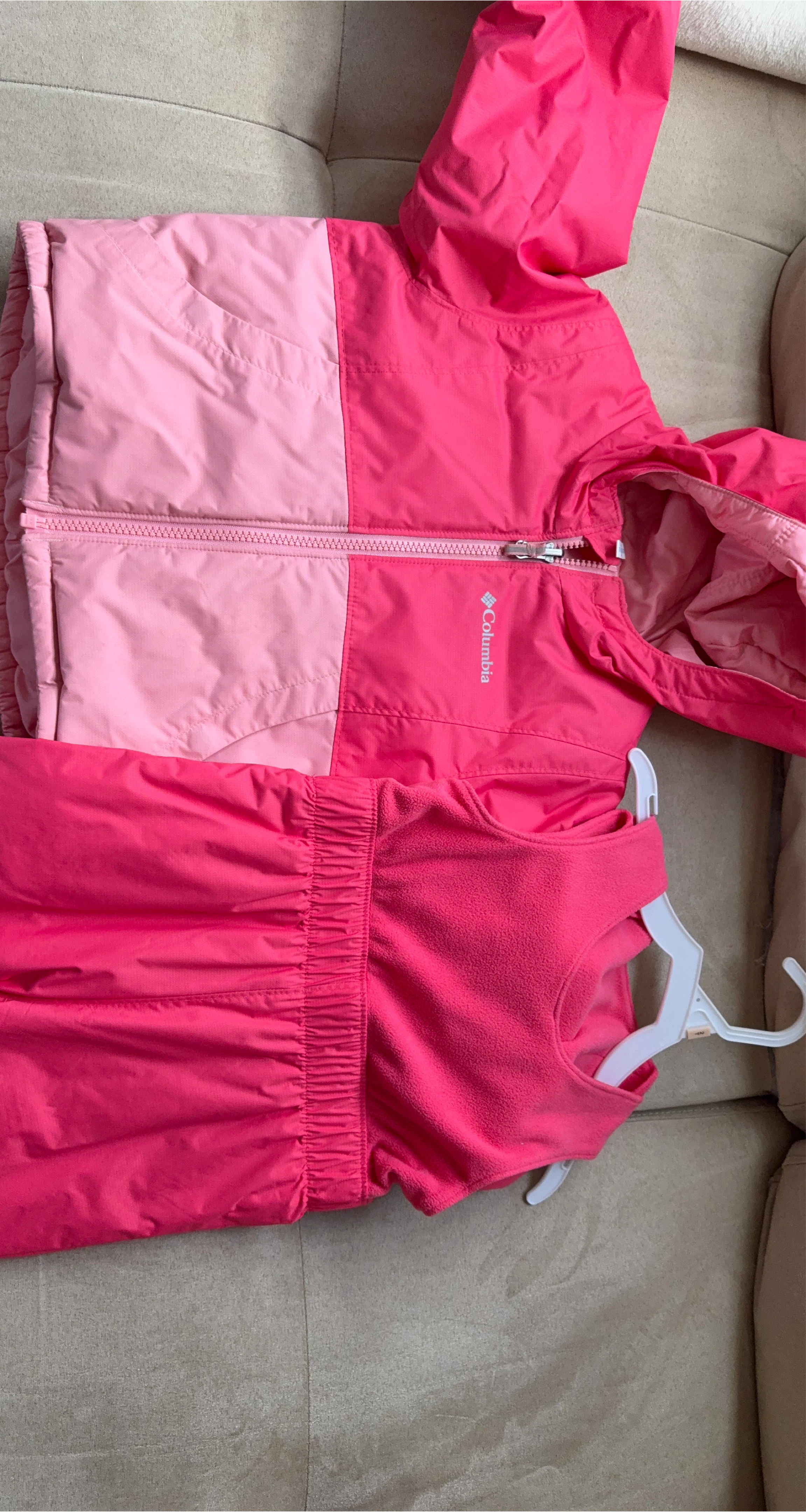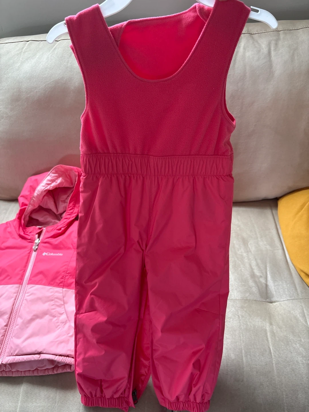 Selling a cute Columbia snowsuit set in pink! It includes both the jacket and the snow pants. The jacket is reversible! Perfect for keeping your little one warm and cozy during the winter months!