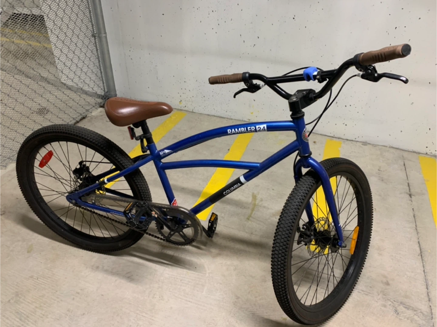 Selling a Columbia Rambler 24 bike! It's a cool blue colour with a brown seat and grips. Great for cruising around the neighbourhood or hitting some trails