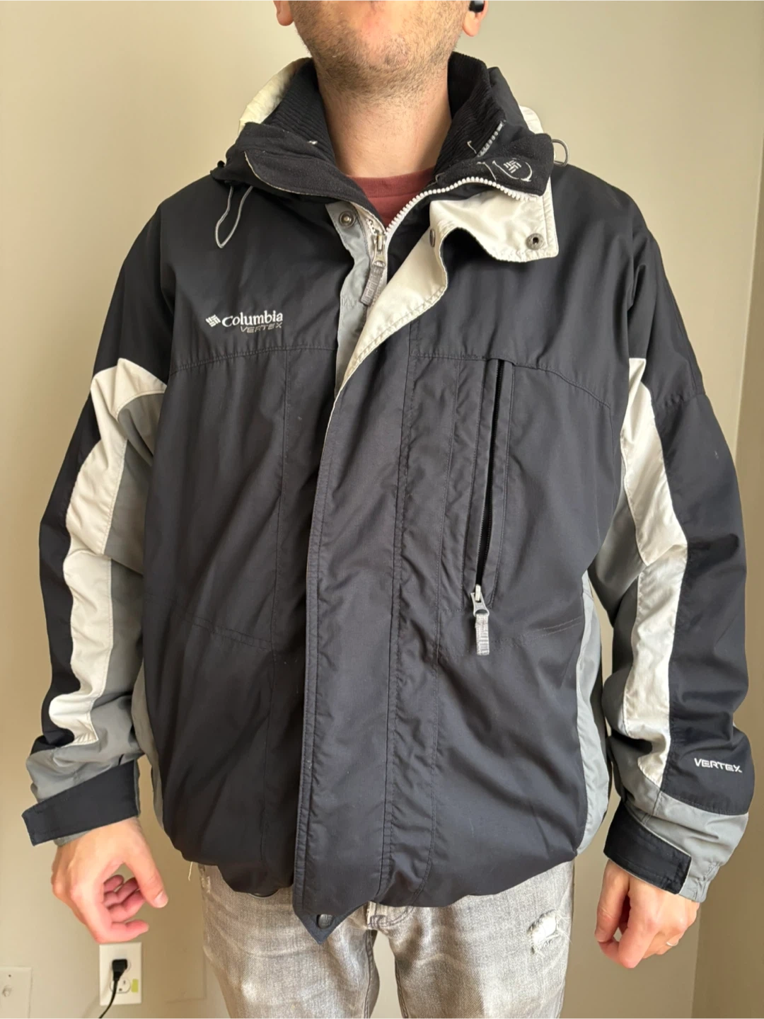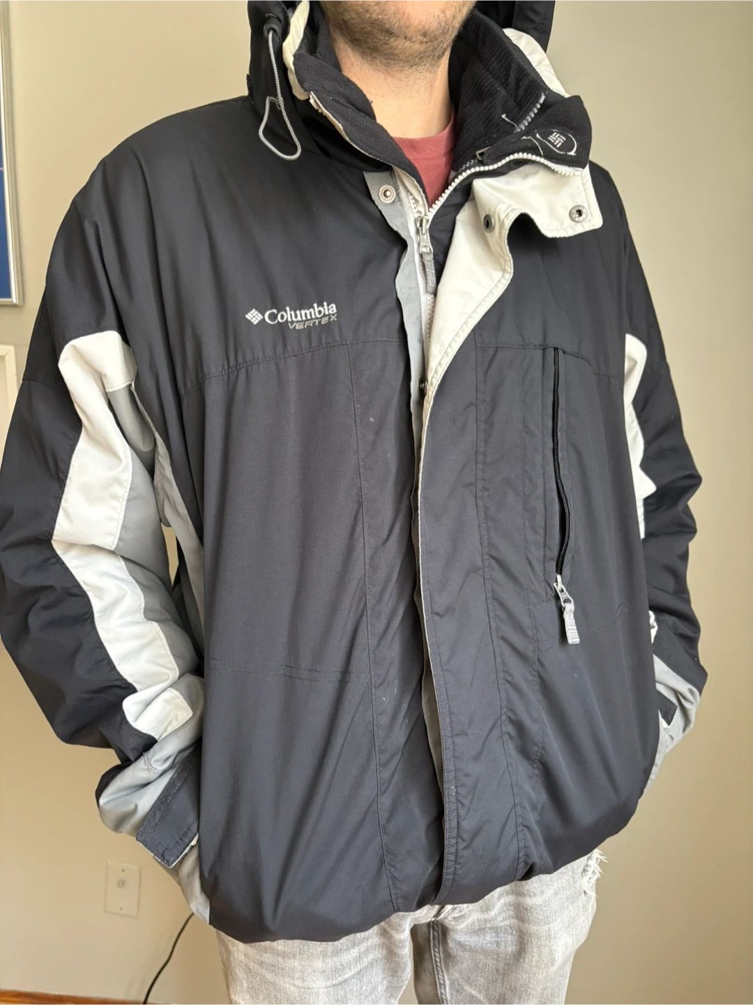 Selling a Columbia Vertex jacket in black and grey! Men MEDIUM size. A cool vintage jacket. Perfect for staying warm and dry this winter season.