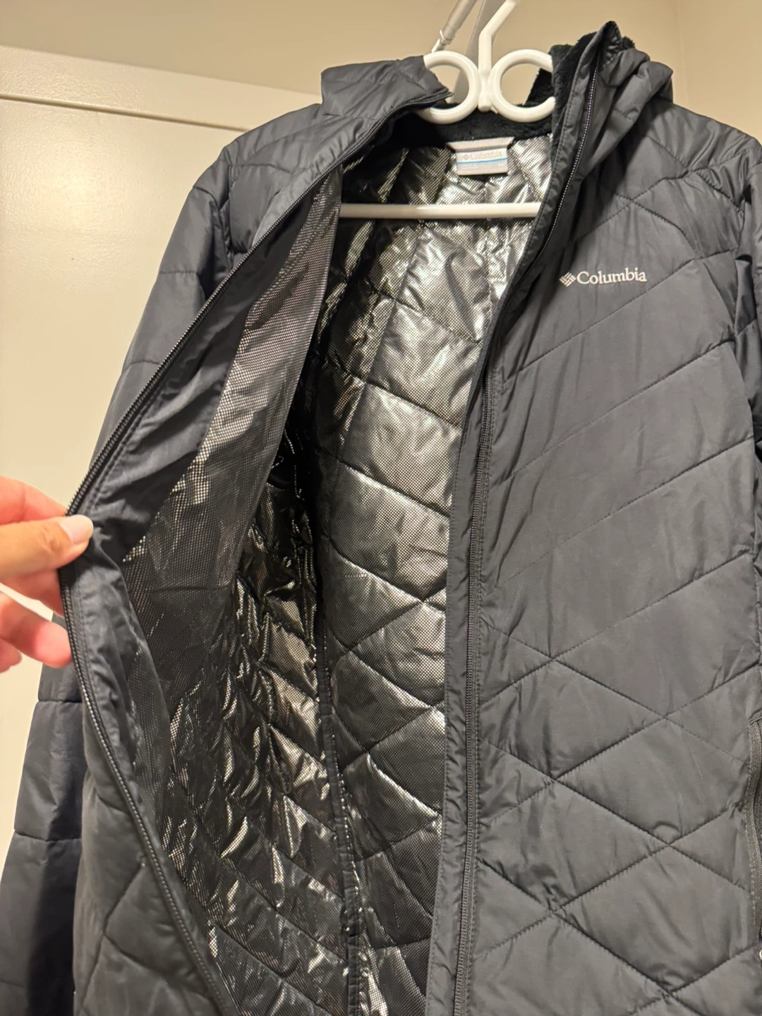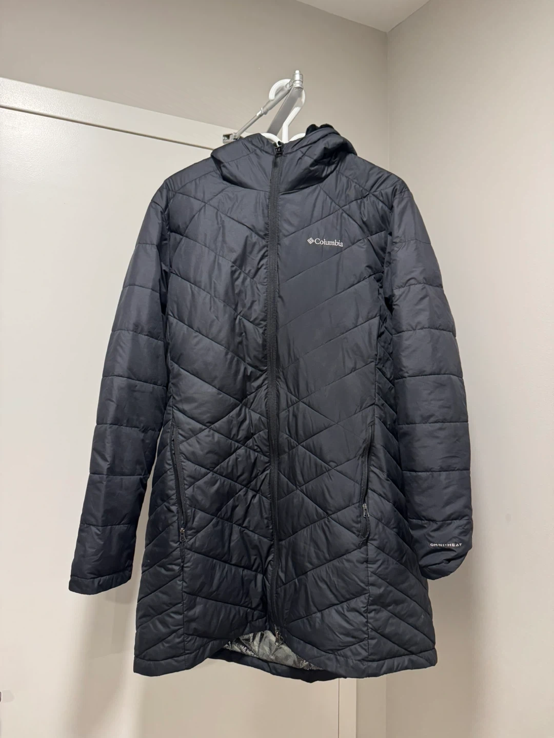 Cozy Columbia puffer jacket in size 1X. It's black and features Omni-Heat technology to keep you warm and comfortable during those chilly days! Perfect for layering or wearing on its own, used less then a handfull of times, smoke and pet free home, must pick up on New Westminster by royal columbia hospital.