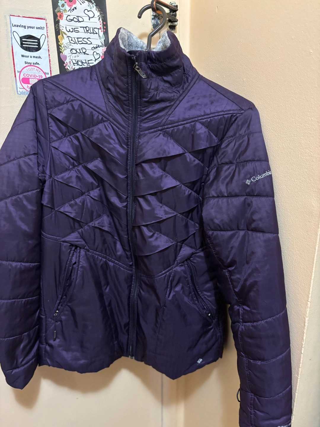 Trade or buy Purple women's jacket. Features Omni-Heat technology heating material very lightweight