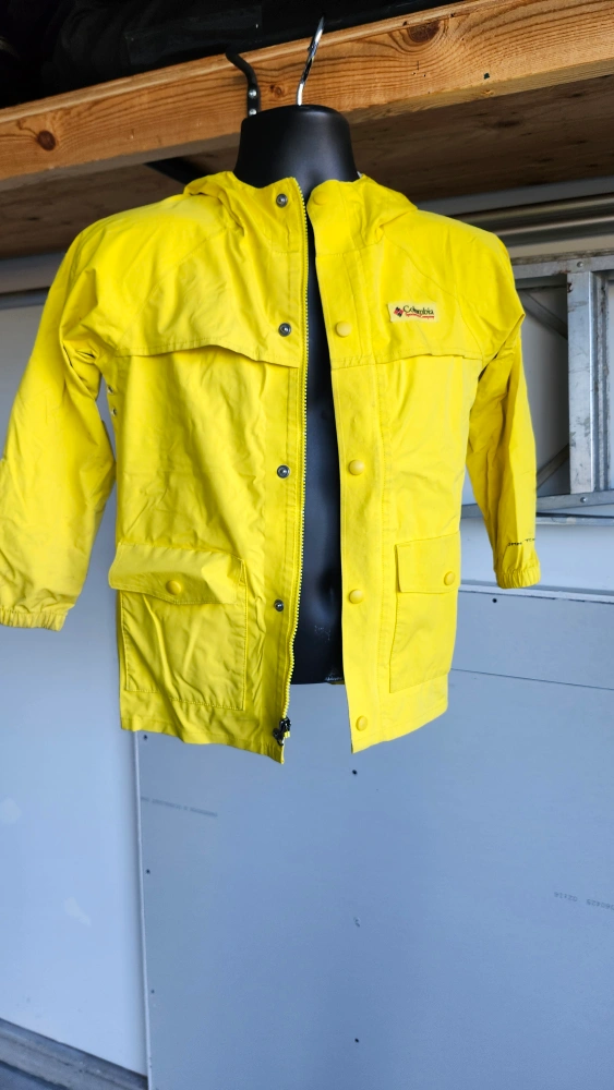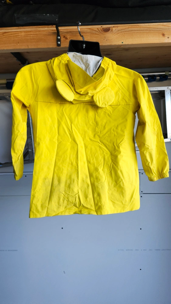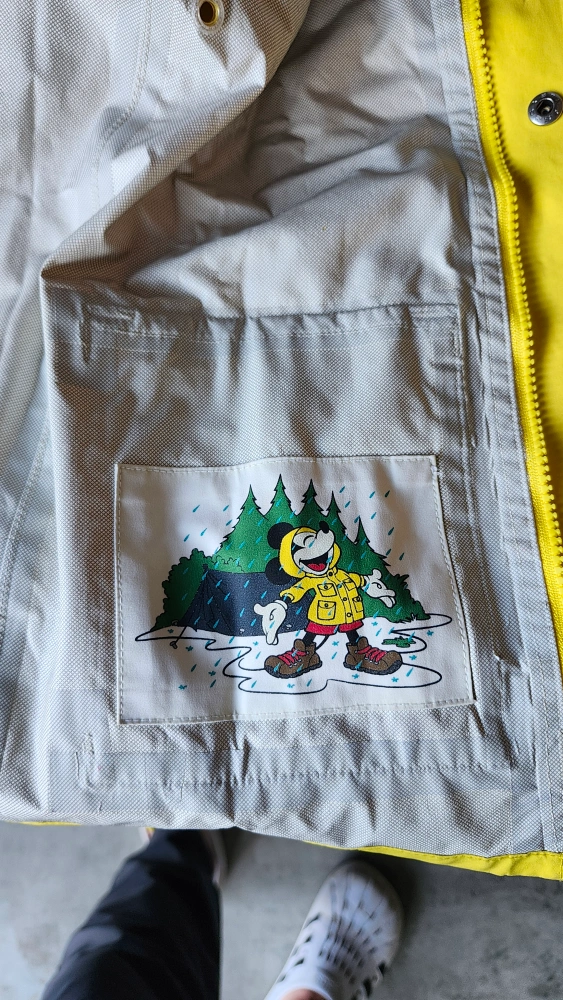 This is a cute yellow rain jacket from the Columbia x Disney collaboration featuring Mickey Mouse! It's a size small and perfect for rainy days. There are some signs of wear, but it's still in good condition. Originally bought for $122.51.