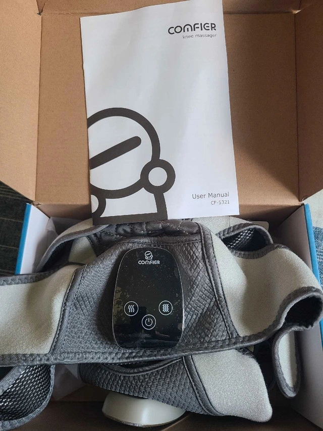 Selling a COMFIER knee massager with vibration and heat. Has 5 vibration modes and 3 heat levels (up to 140°F). Rechargeable with a detachable battery—no cords while using. Can also be used on elbows, shoulders, arms, and calves. Comes with extender straps to fit any size comfortably. Used only twice. Works perfectly, I just don’t need it anymore. Pickup in Brantford.