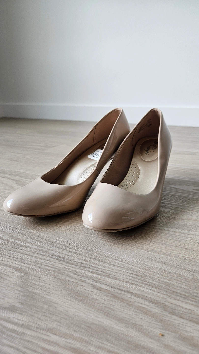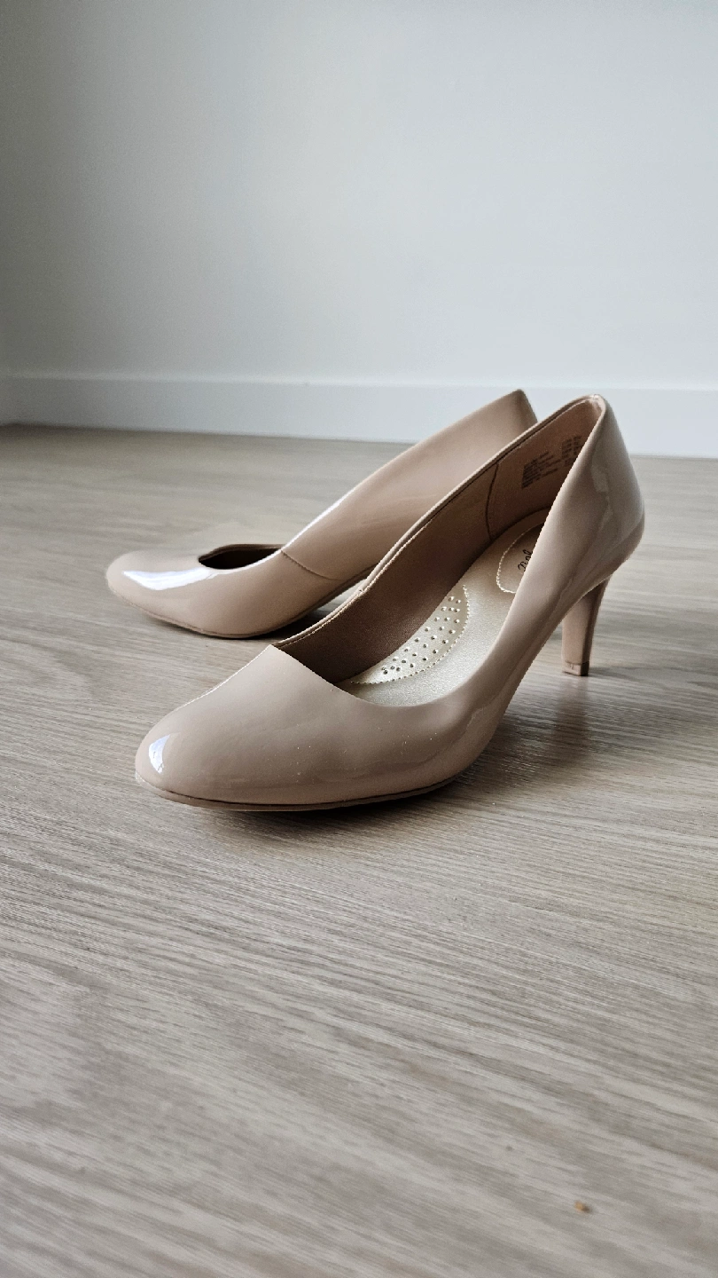 Selling a pair of Comfort Plus heels in a lovely beige colour. They're a size 9.5. These heels are perfect for adding a touch of elegance to any outfit!