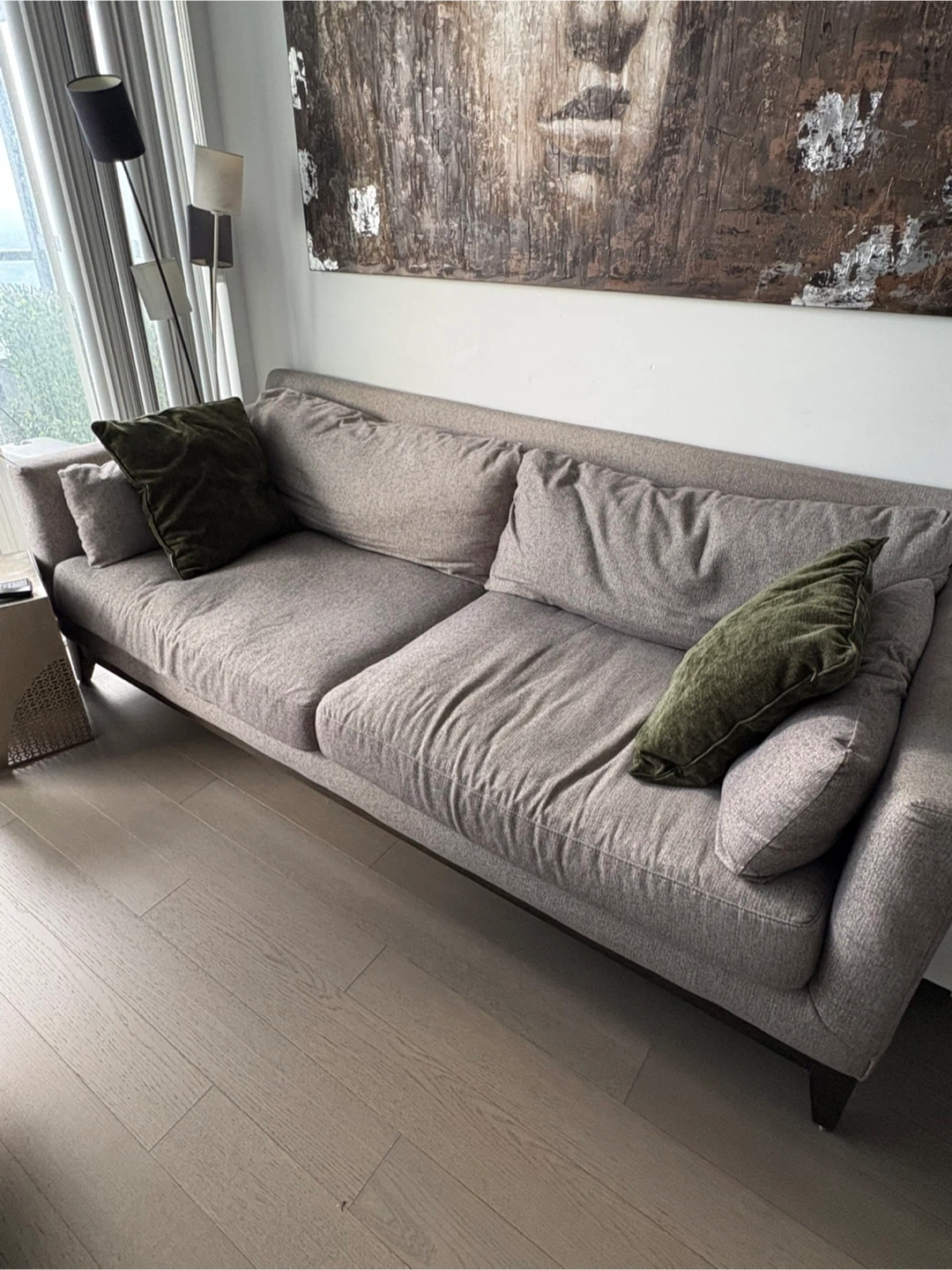 Selling a comfy two-seater sofa! It's in great condition and ready for a new home. Cushions are soft and supportive. Paid retail $2,250 from Urban Barn.
