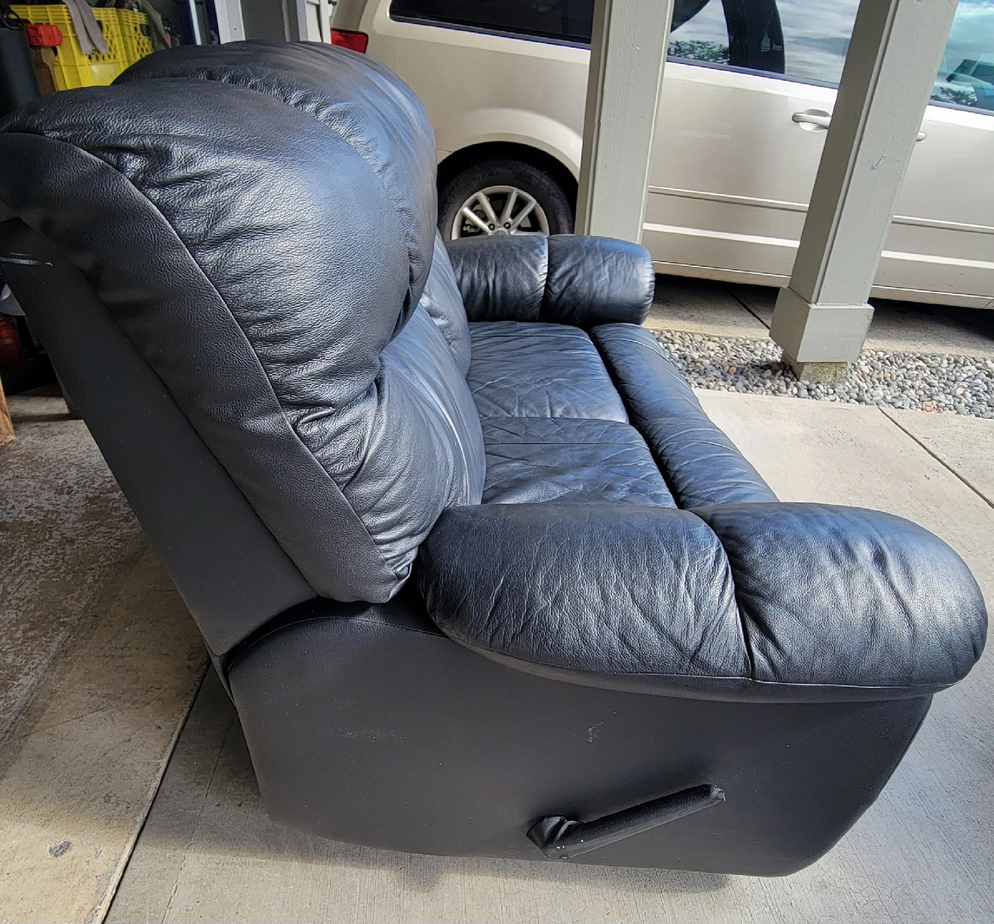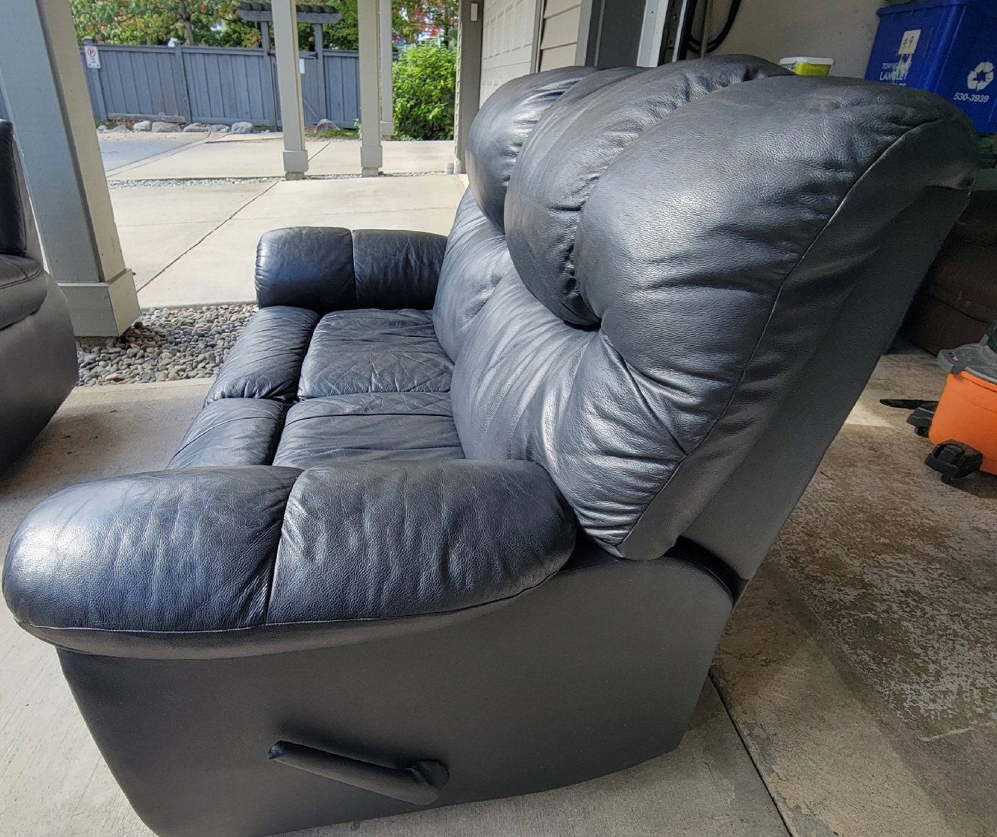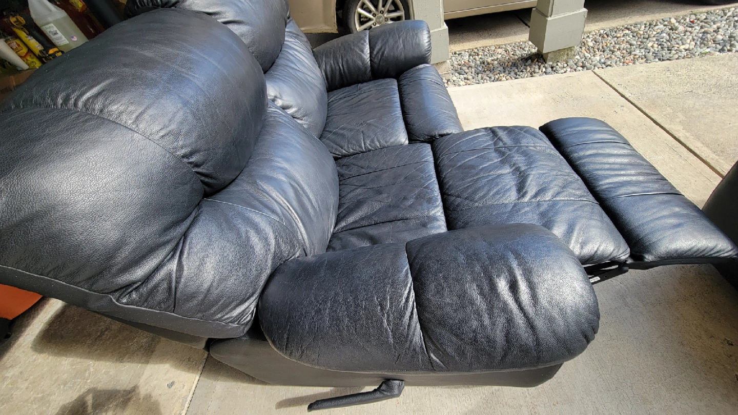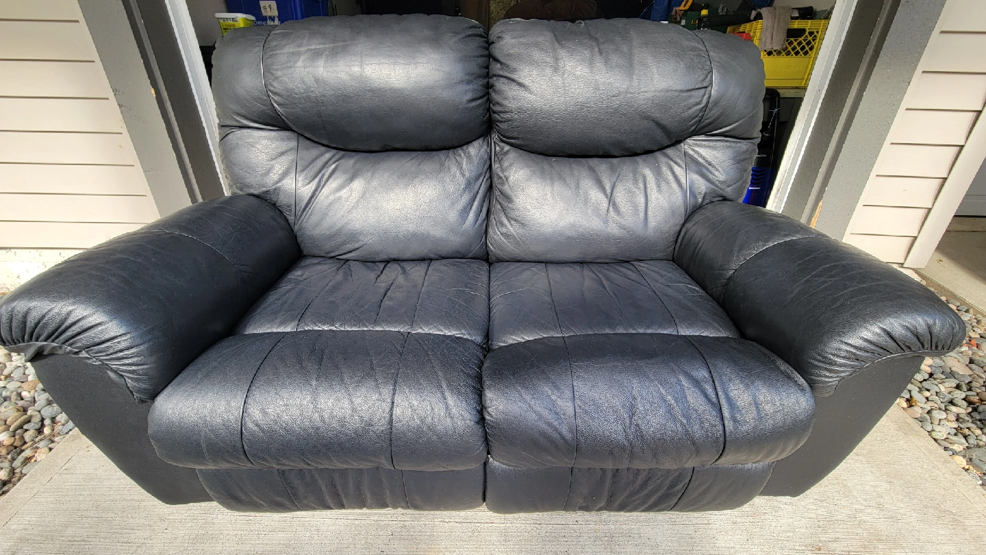 Selling a nice clean and comfy black leather recliner loveseat in excellent clean condition. Palliser brand black leather loveseat is lightly used and damage free. Comes from a clean non smoking home with no children or pets. Asking $400 including delivery. Located in Langley Township area near Home Depot FREE DELIVERY included with purchase OR Can be picked up anytime during the day .