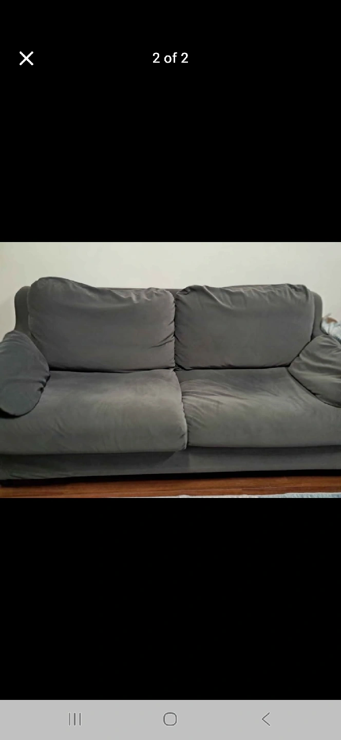 Vinliden, Loveseat, Hakebo dark gray https://ingka.page.link/NCGbFmJvZhd5o7us9 Selling a comfy grey sofa! It's in good condition and ready for a new home. Perfect for lounging and relaxing after a long day. It's a great addition to any living room or den
