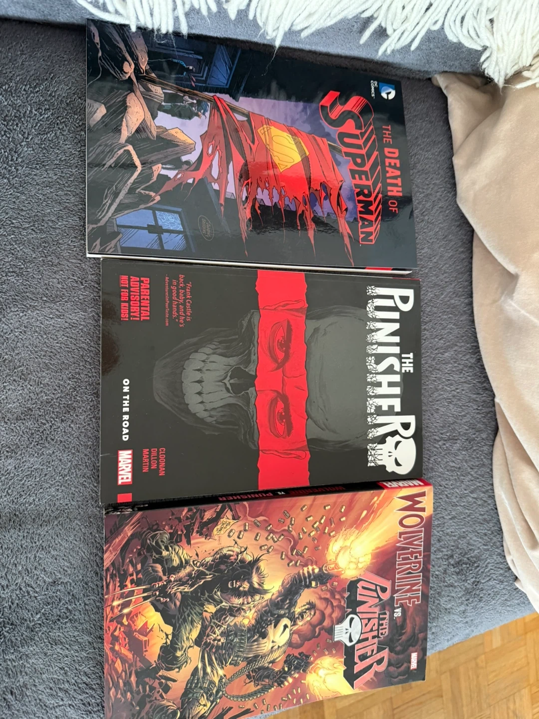 Selling a lot of comic books including: - The Death of Superman $20 - The Punisher $10 - Wolverine and The Punisher $60 rare
