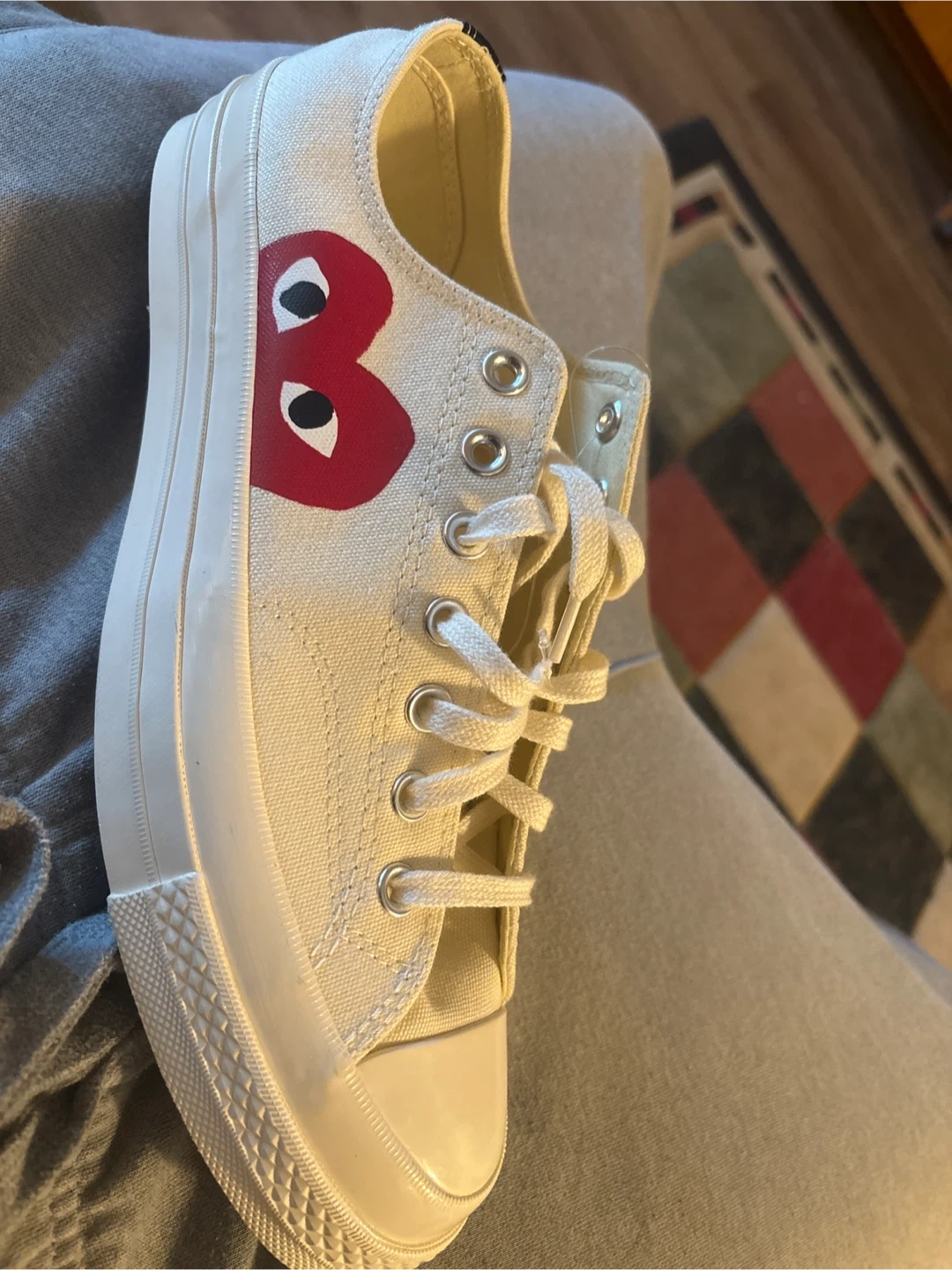 Selling a pair of Comme des Garçons PLAY x Converse Chuck 70 sneakers. These iconic shoes feature the signature heart-and-eyes logo. They're in great condition and ready for a new home!