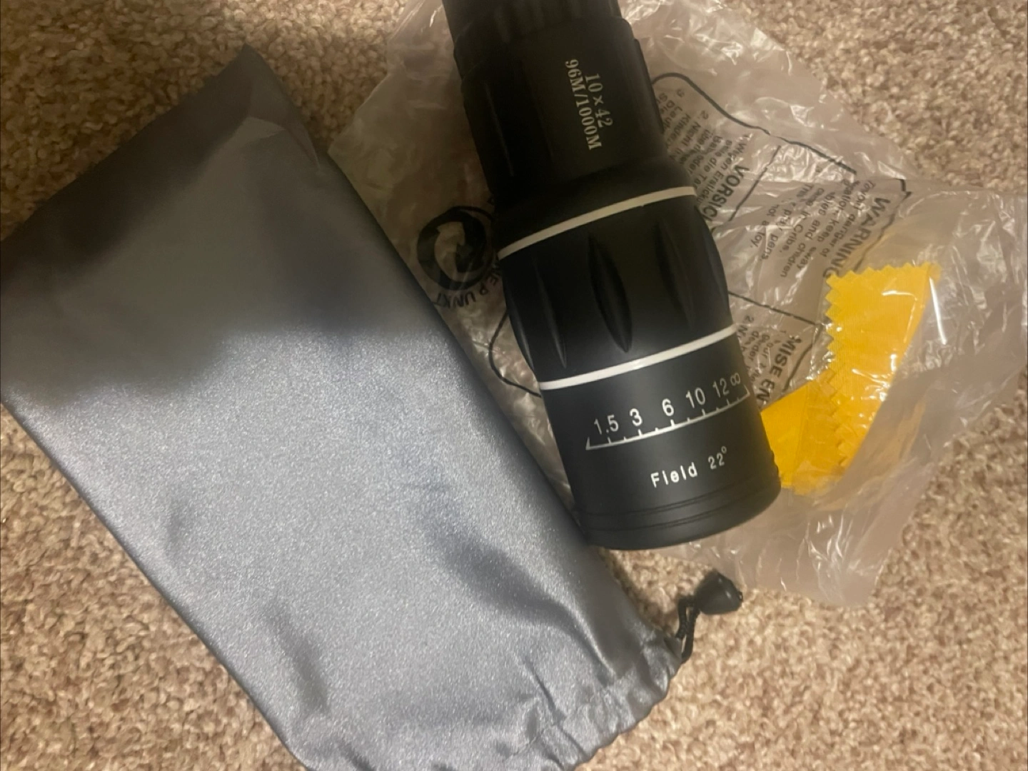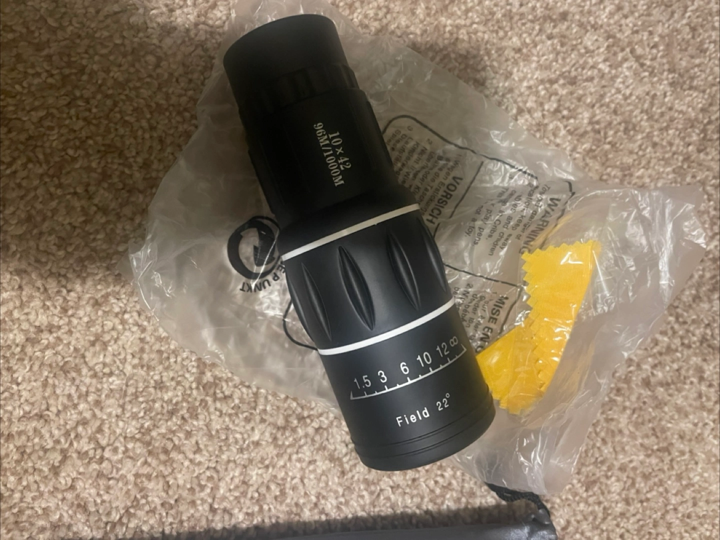 Portable monocular telescope. Includes carrying pouch and cleaning cloth. Great for travel and outdoor activities. 10x magnification.