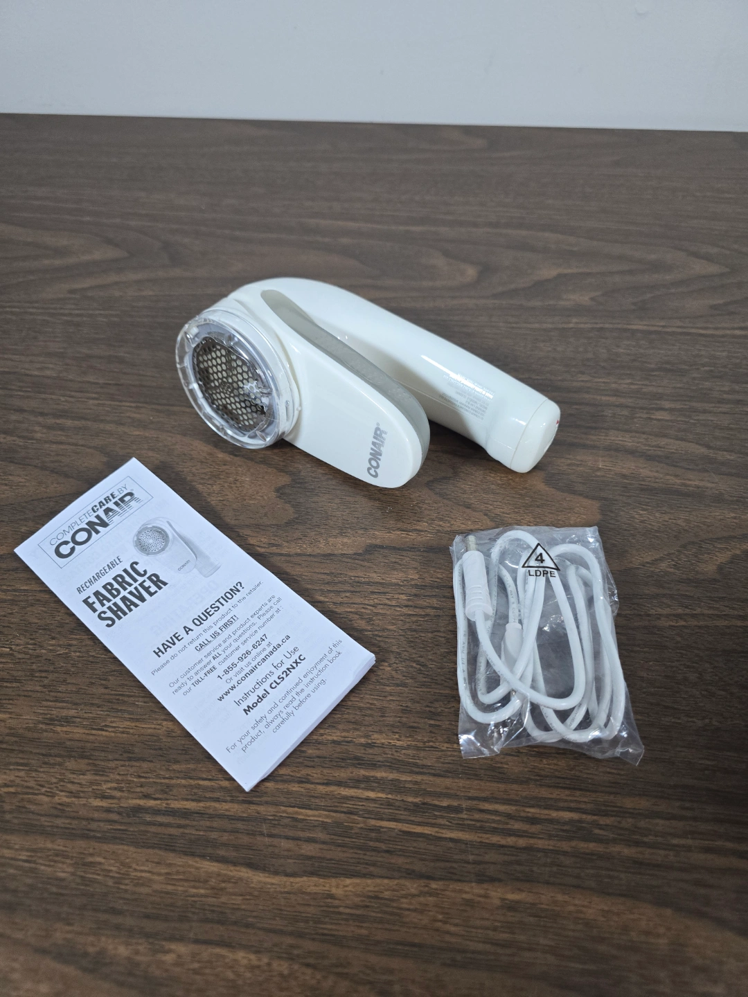 Rechargeable Conair Fabric Shaver. CLS2NXC About this item ➙ Rechargeable for corded or cordless use ➙Large shaving surface ➙Safely removes fuzz, lint, and pilling ➙3-setting depth control for customized fabric shave ➙Adjusts for fabric type Pickup in Stratford Smoke-free/Pet-free home Checkout other ads for more items