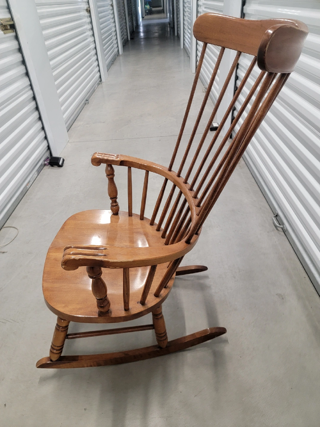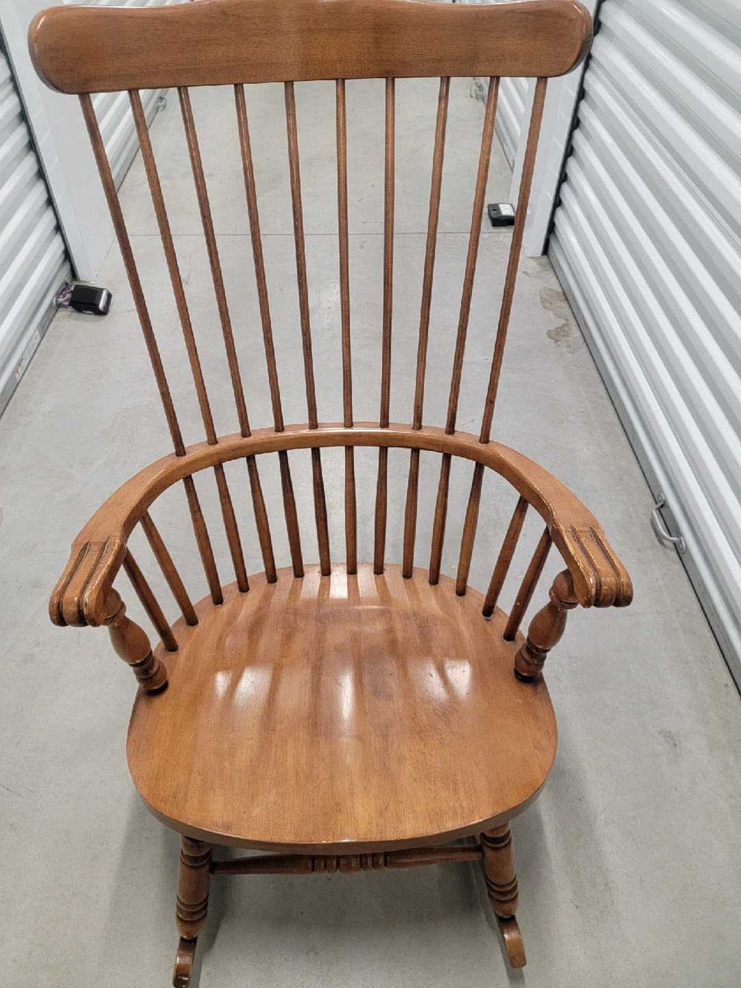 A beautiful rocking chair from Conestoga Chair Co. It's in great shape and ready for a new home. This chair features a classic design and sturdy construction, perfect for relaxing evenings. The wood has a warm, inviting tone that would complement any decor