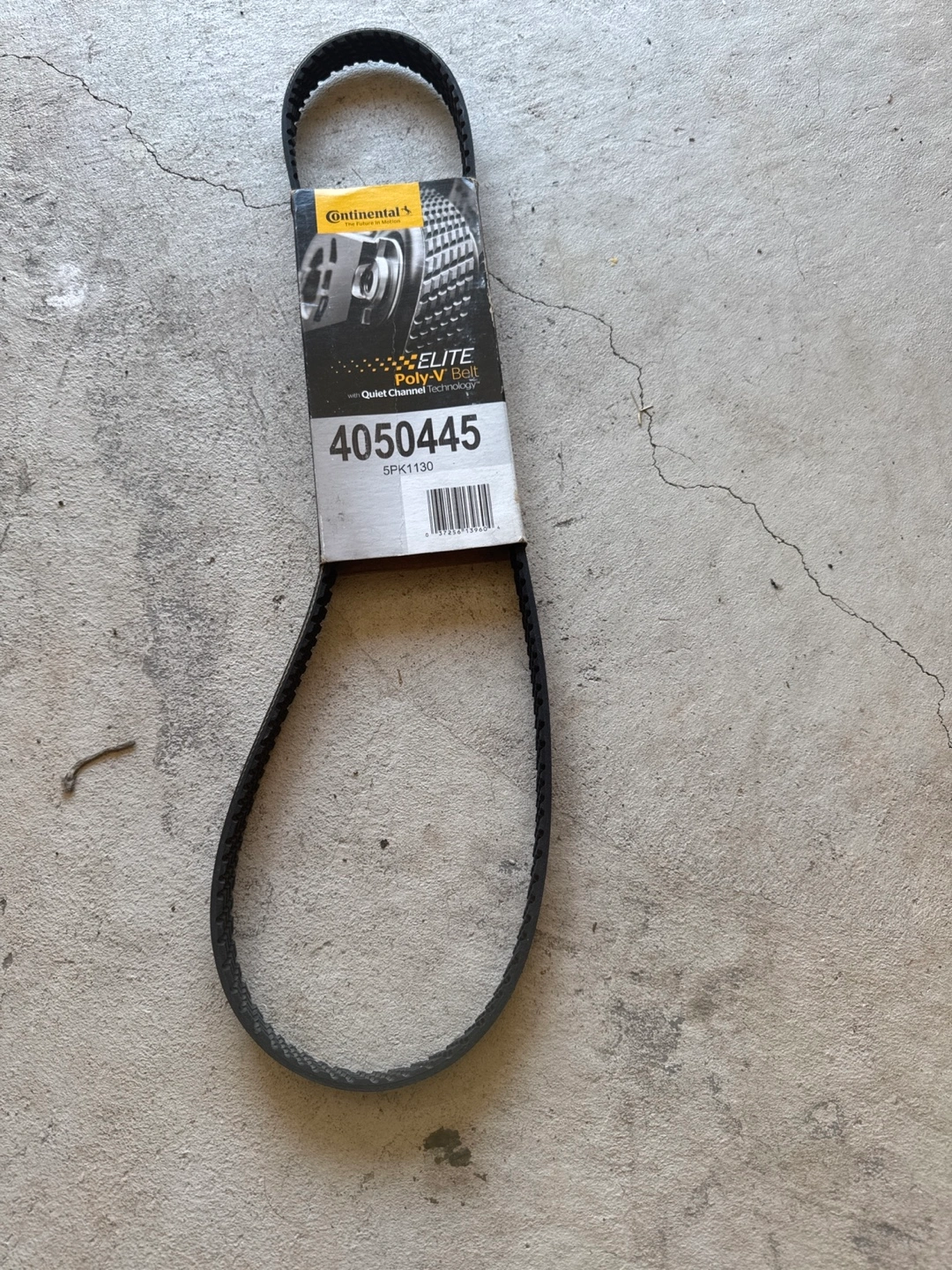 Selling a Continental Elite Poly-V Belt, part number 4050445. This belt is designed to provide quiet operation and reliable performance. It's a 5PK1130 size.