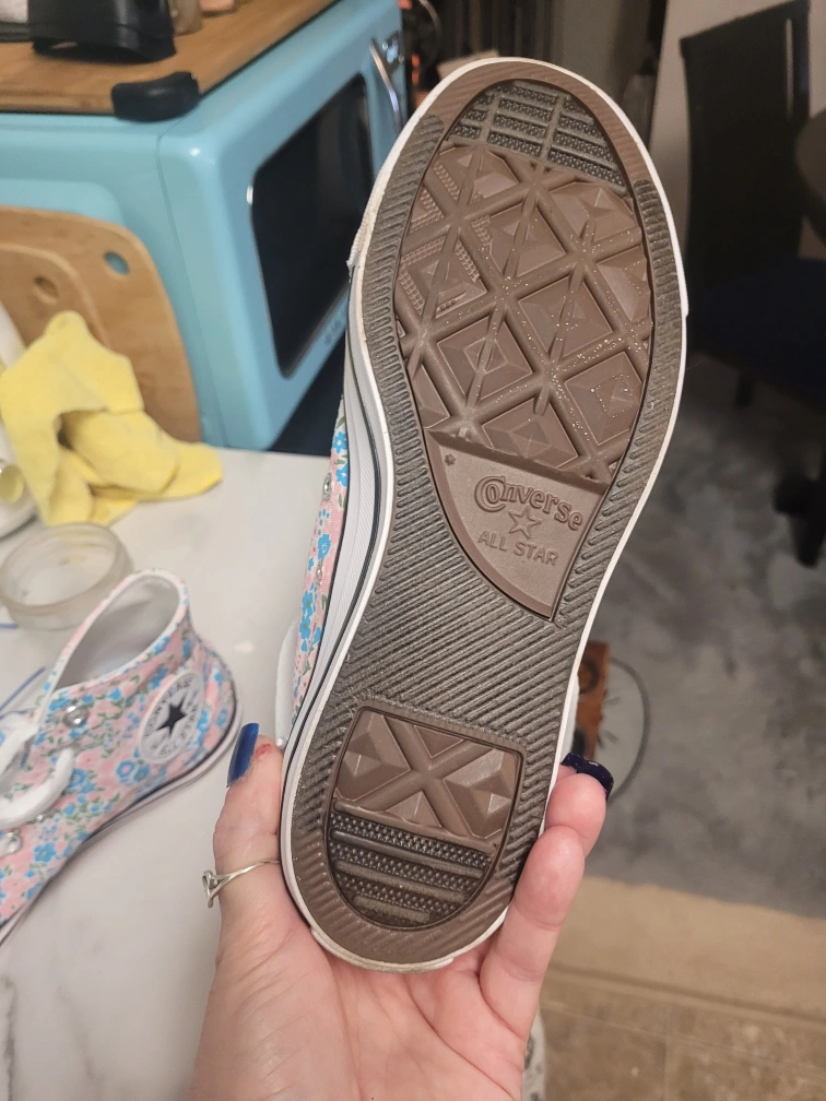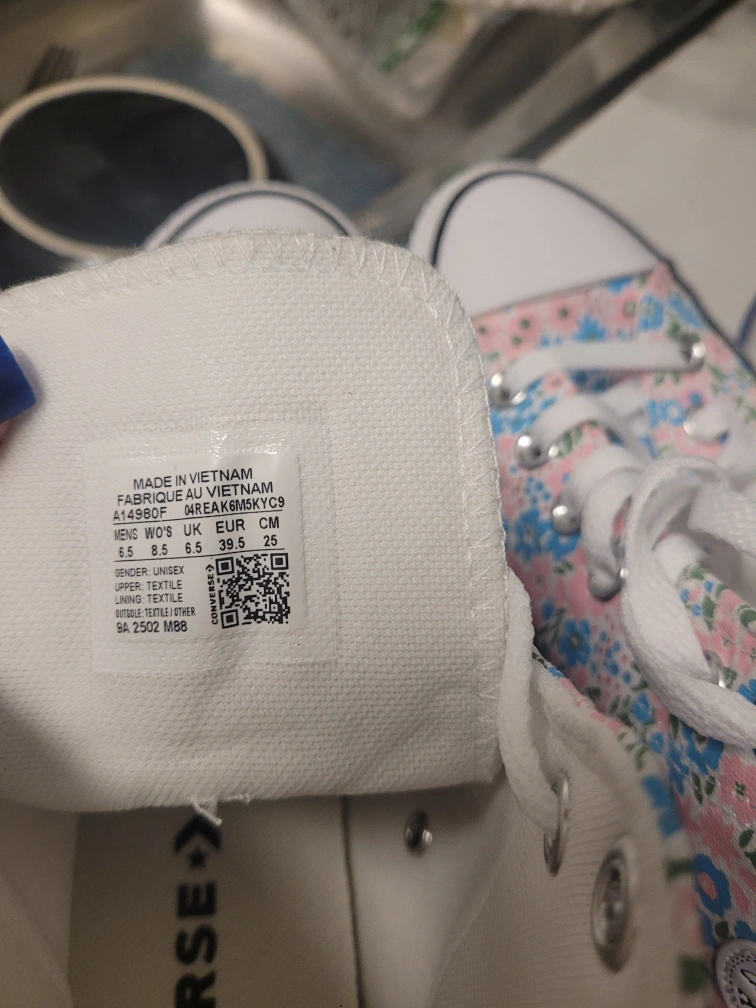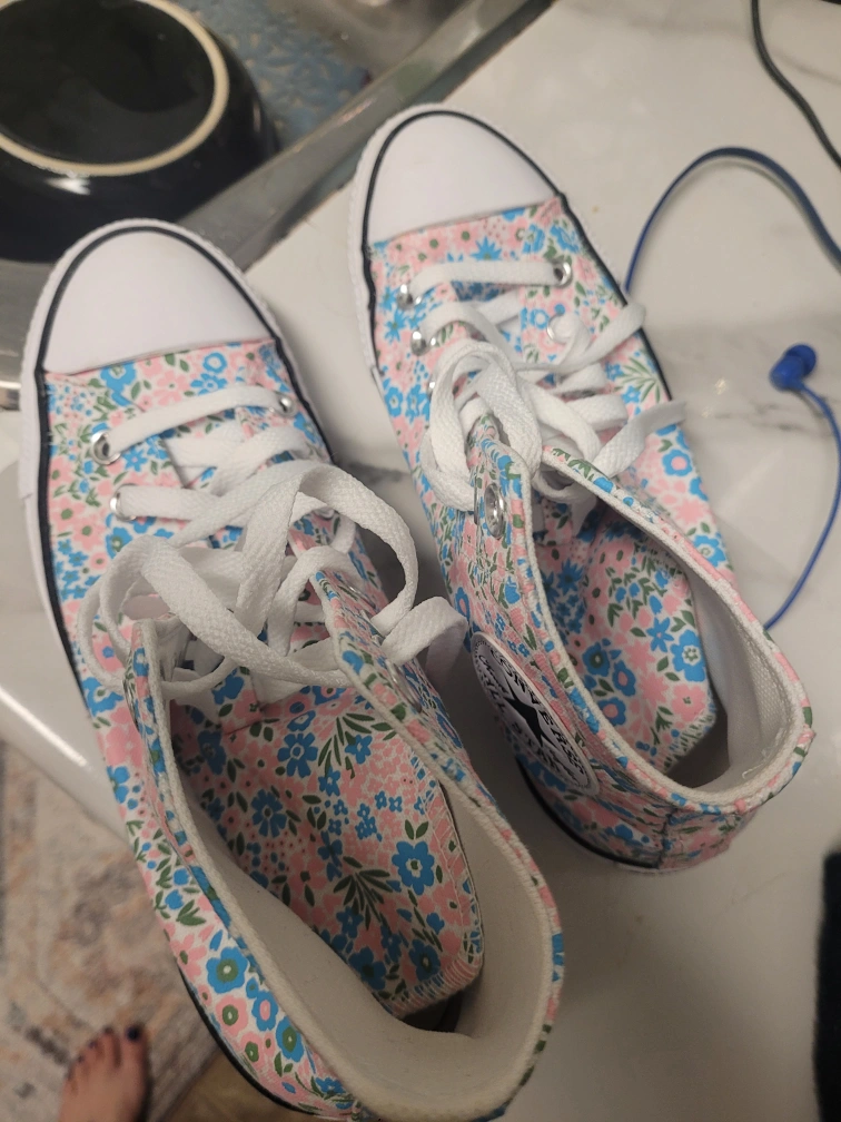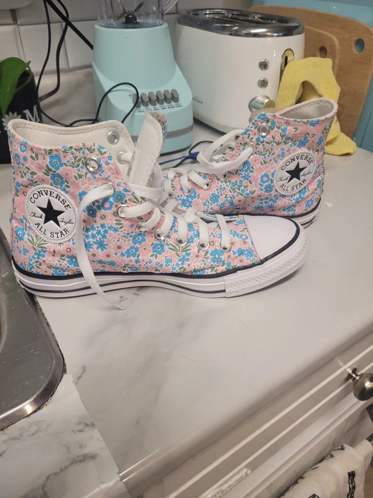 Selling a pair of Converse All Star high top sneakers with a cute floral pattern! These are in women's size 8.5 / men's size 6.5. They're in great shape and ready for a new home! only worm once