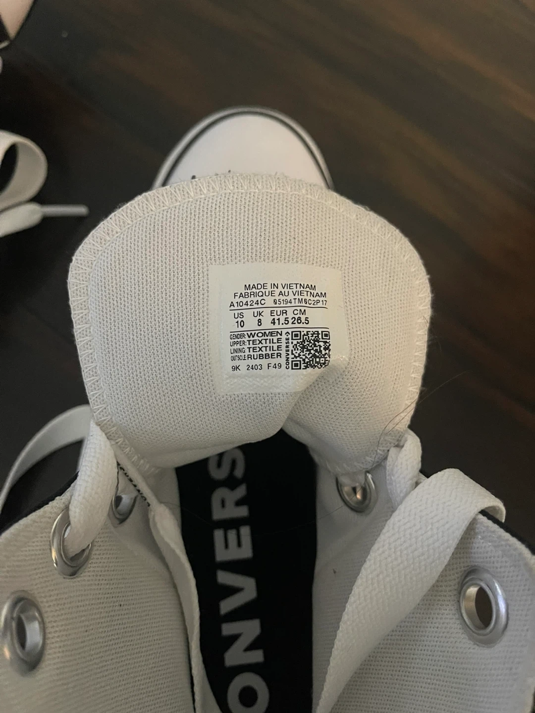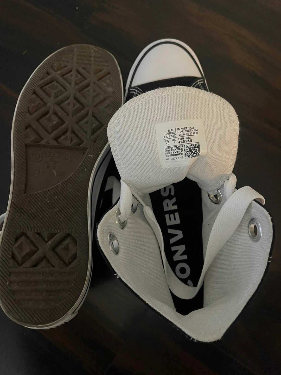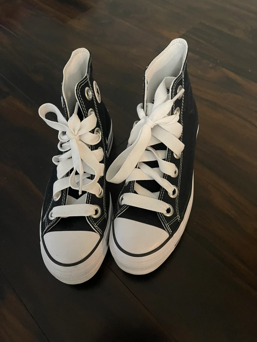 Selling a pair of classic black and white Converse All Star high tops! They're in great shape and ready for a new home. These are a women's size 10. They're super versatile and go with just about anything!