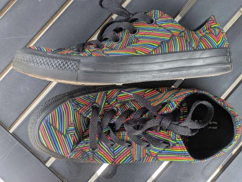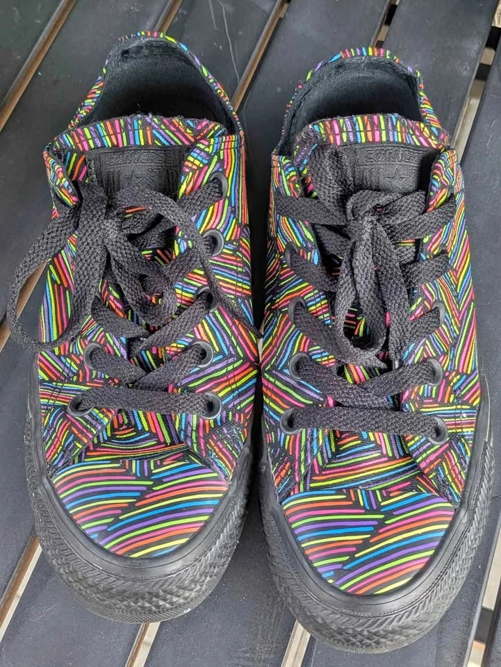 Show allConverse All Star Low Top Black Neon Rainbow Stripes
