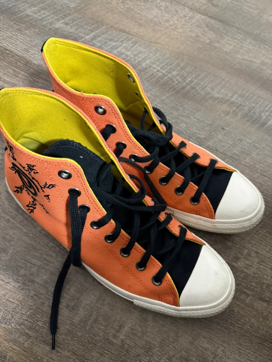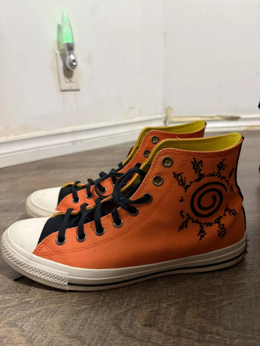 Selling a pair of Converse All Star high-top sneakers with a Naruto design! The shoes are in good condition and come with the original box. Size is 10