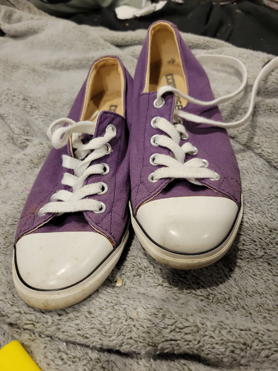 Selling a pair of Converse All Star sneakers in purple! They're a size 5 and in good condition. Perfect for adding a pop of colour to your outfit!