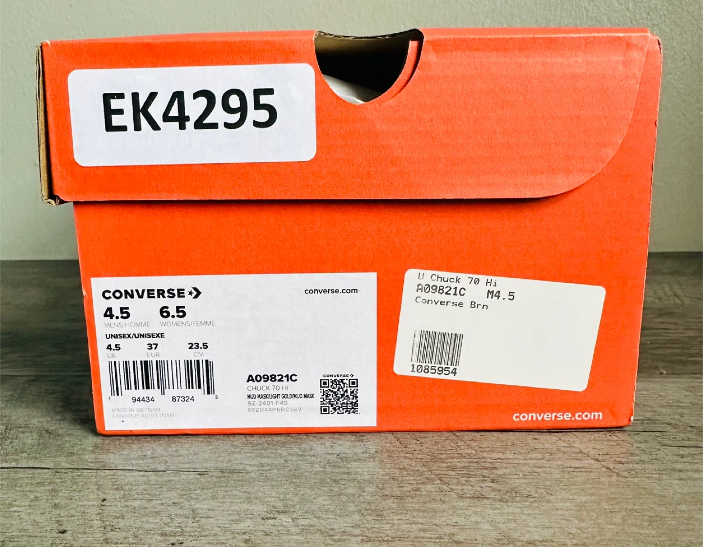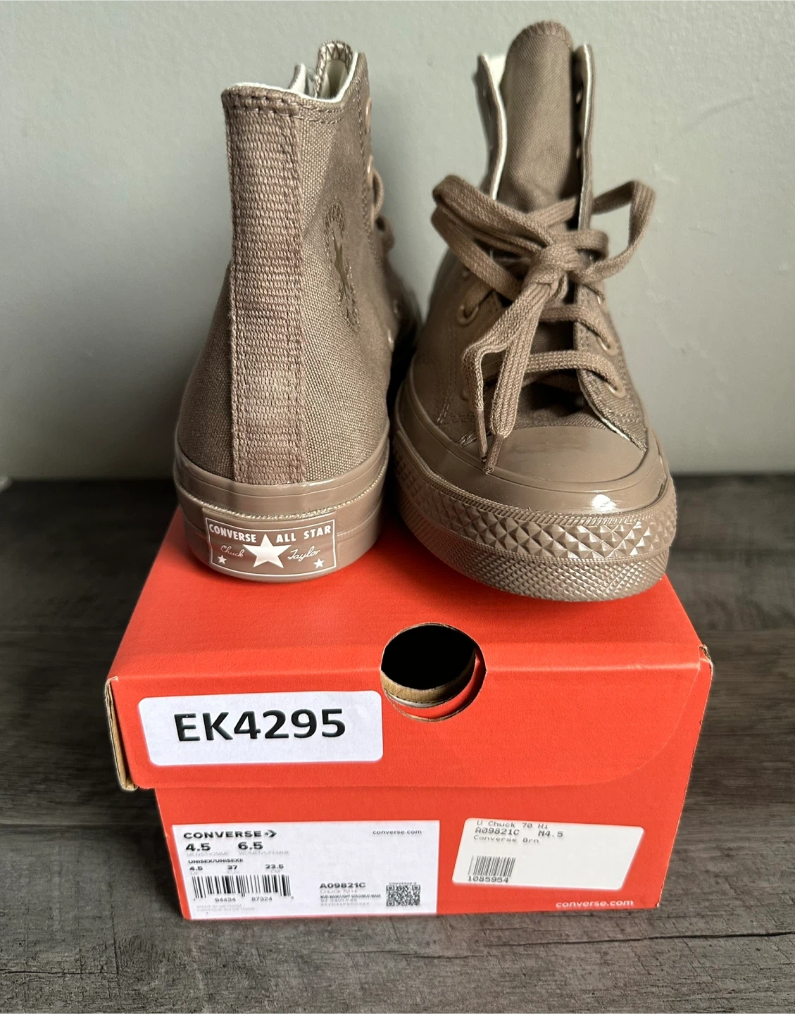 Selling a brand new pair of Converse Chuck 70 Hi sneakers in brown colour. These are a women's size 6.5 or men size 4.5. Comes with the original box!