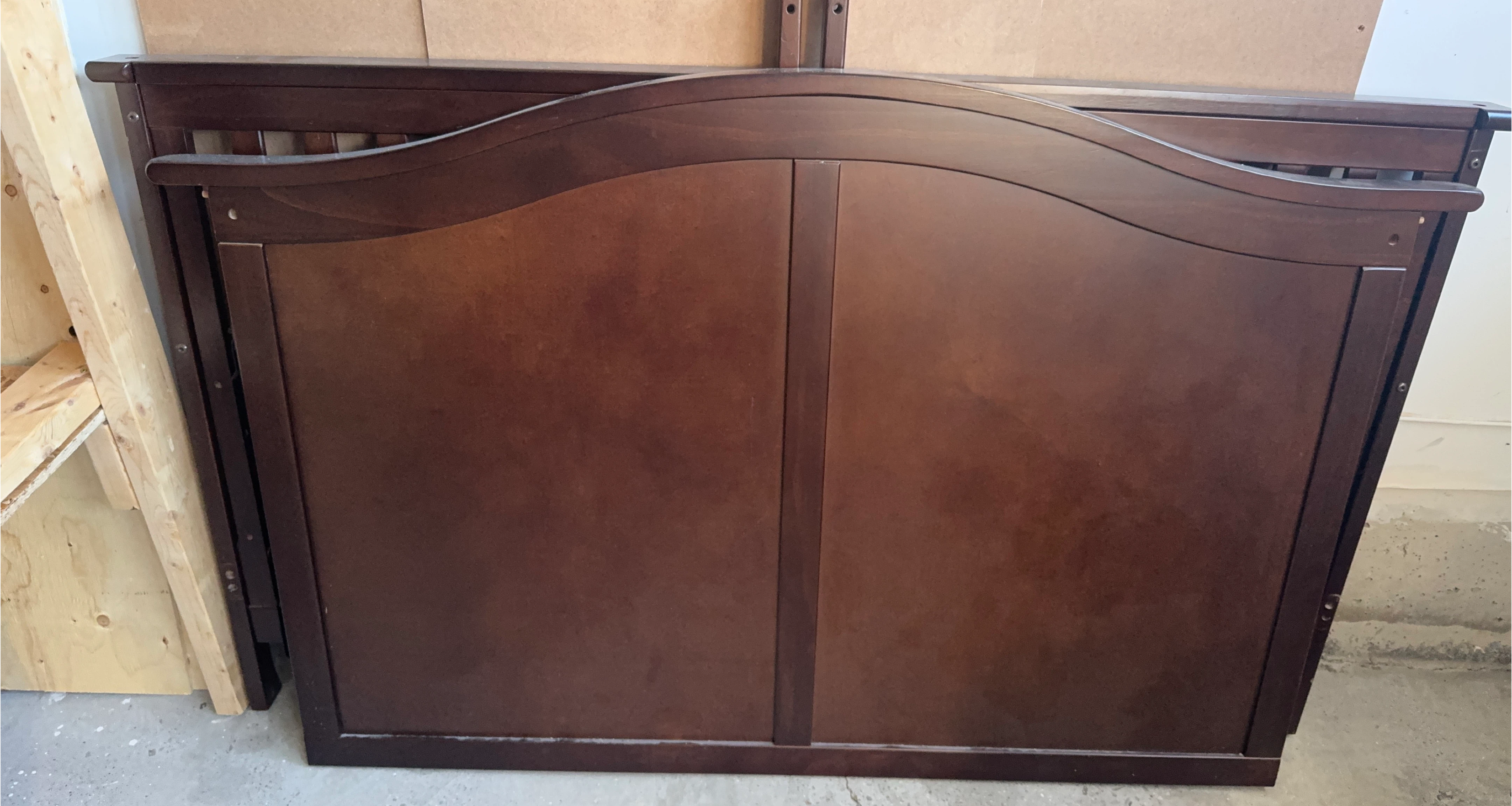 Selling a convertible crib in a lovely brown colour. It's in great condition and ready for a new home. Perfect for your little one's nursery!