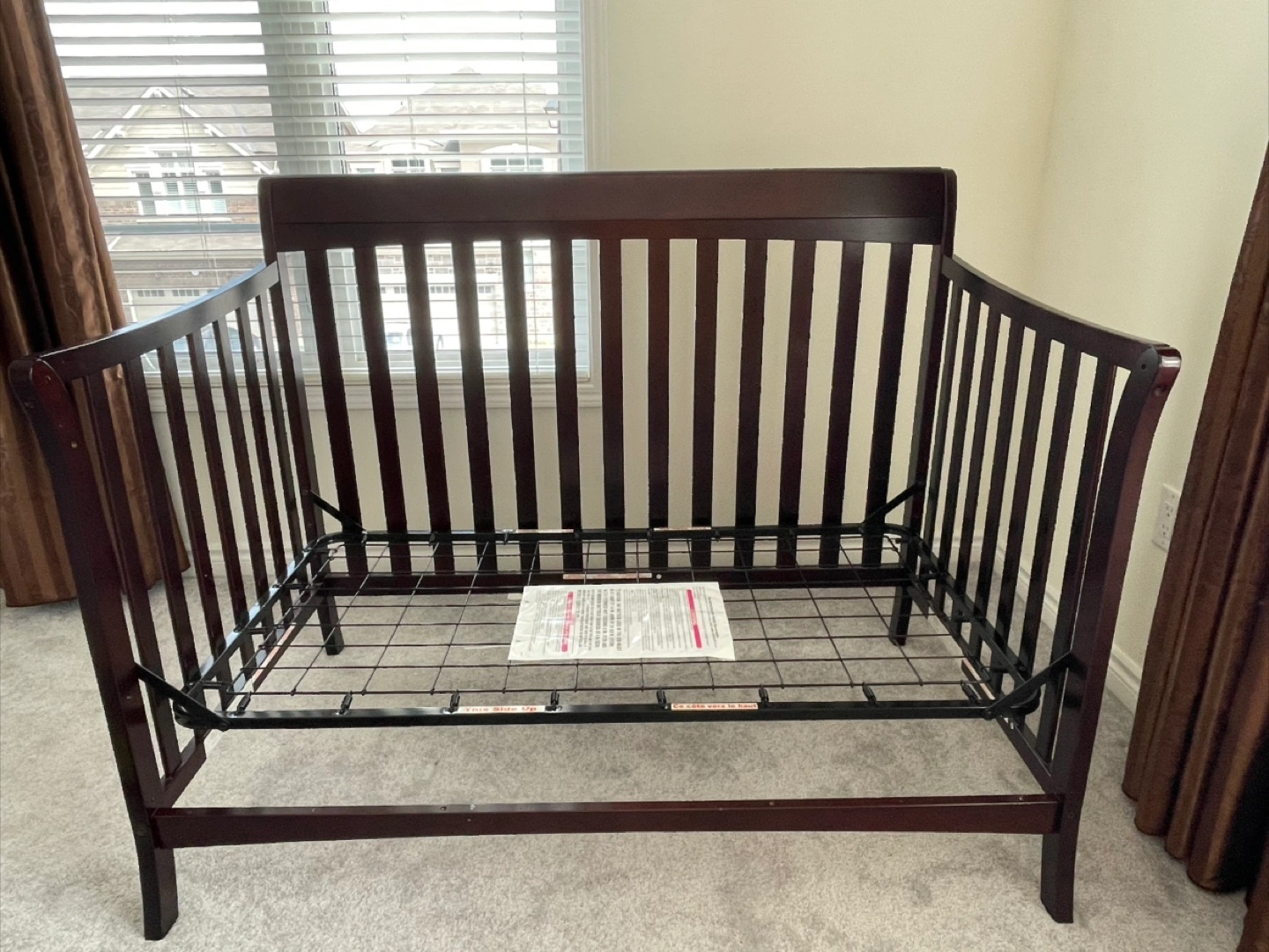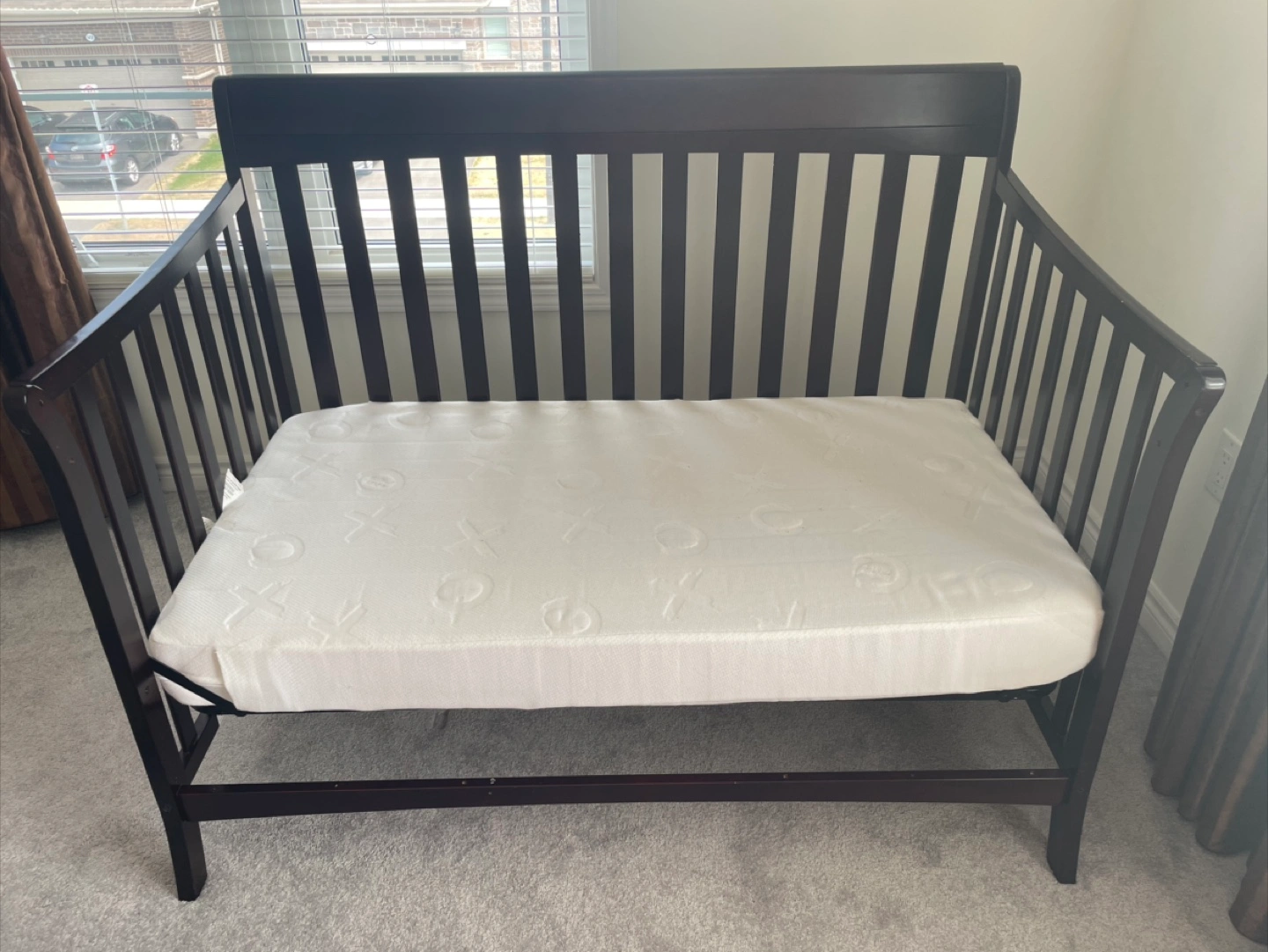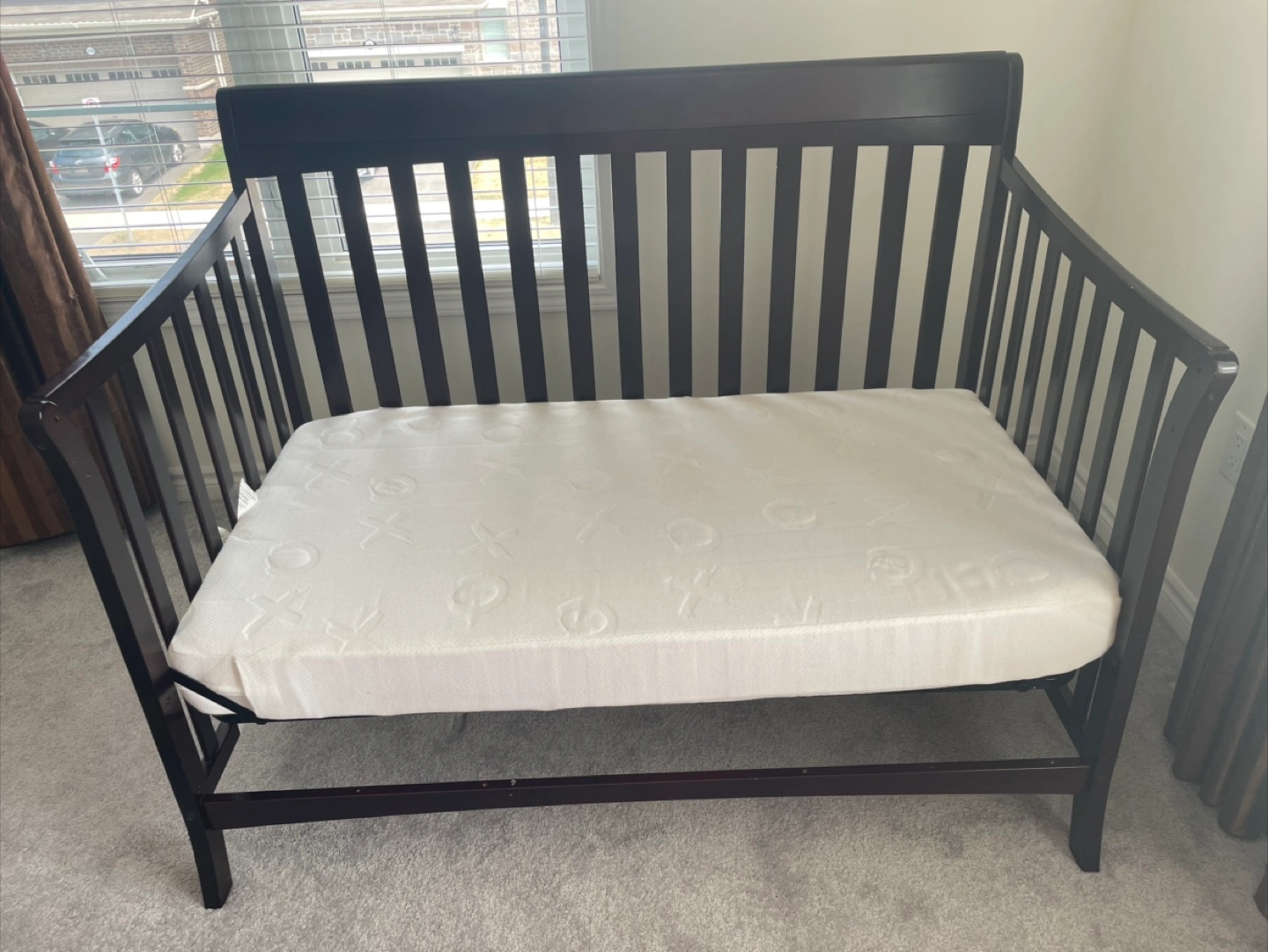 Selling a convertible crib in an espresso finish. It's in great condition and ready for a new home. Mattress included!
