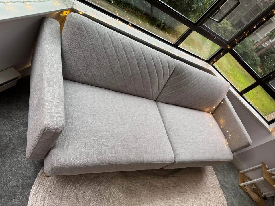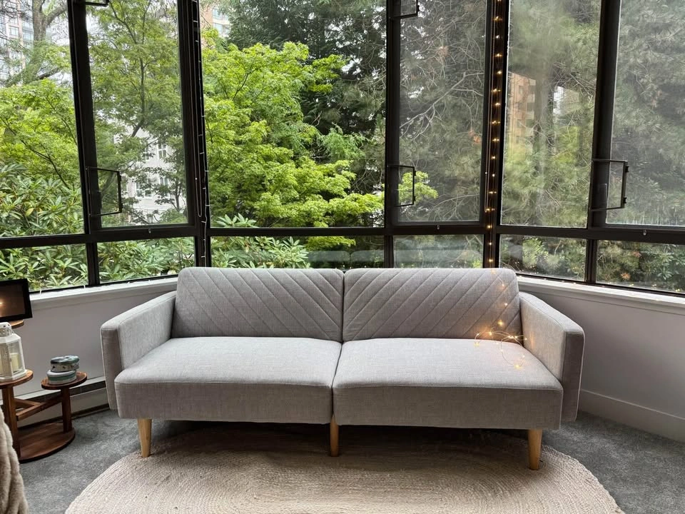 Like-new convertible sofa bed for sale! We’re only selling it because we recently moved to a bigger place and bought a larger couch. This modern upholstered sofa easily transforms into a bed — perfect for living rooms, bedrooms, or guest spaces. The clean design, light grey fabric, and wooden legs give it a stylish, cozy look while staying super comfortable. Details: • Overall dimensions: 28.3” H × 77.56” W × 28.3” D • Seat dimensions: 16.54” H × 69.29” W × 21.26” D • Arm height (floor to arm): 22.8” • Leg height: 7.87” • Weight: 75 lbs • Color: Light grey • Condition: Excellent (barely used) • Smoke-free & pet-free home 📍 Pickup only