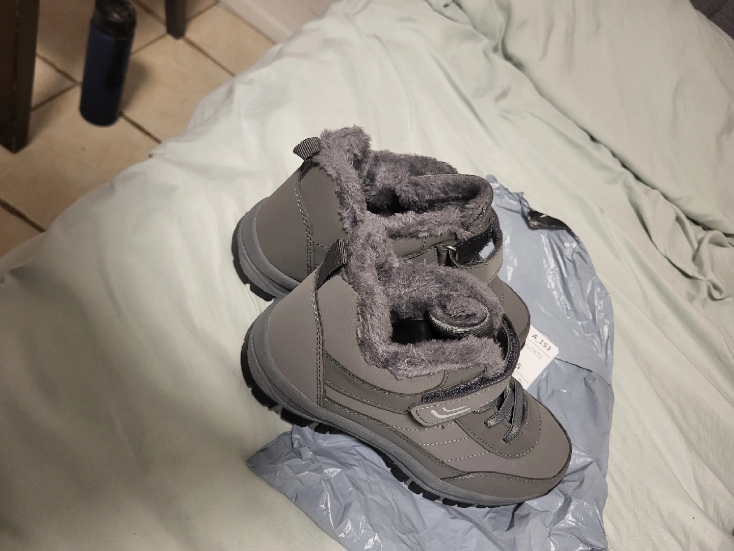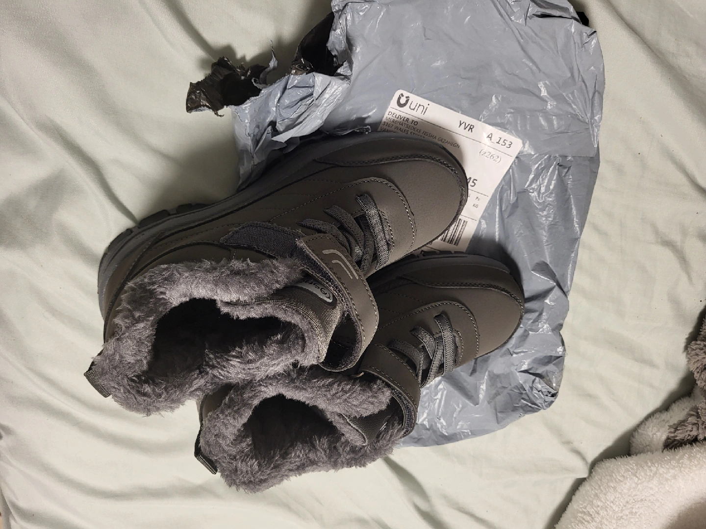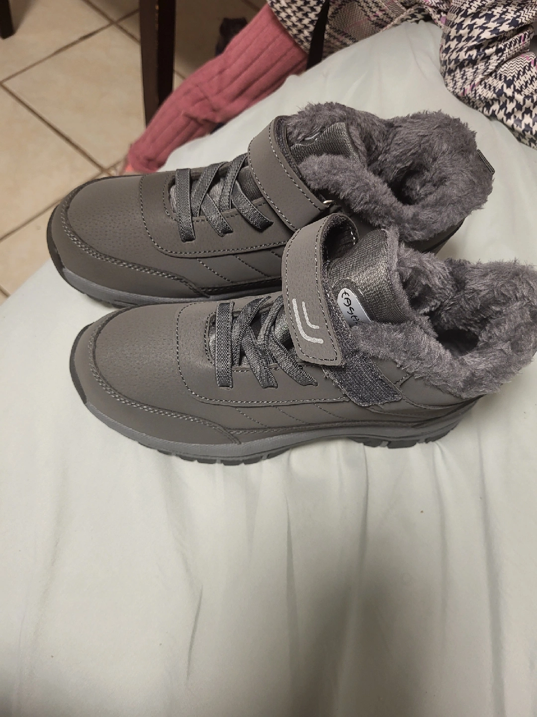 New, Coogo winter boots in a lovely grey colour! They're super cozy with the fur lining, perfect for keeping your feet warm during the colder months. They come with the original packaging too! I never wore them, size 4.4 American. too small for me forgot to return it
