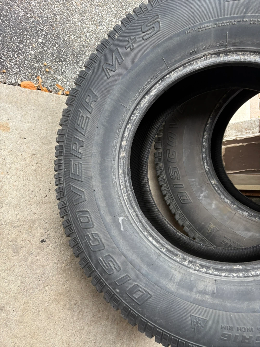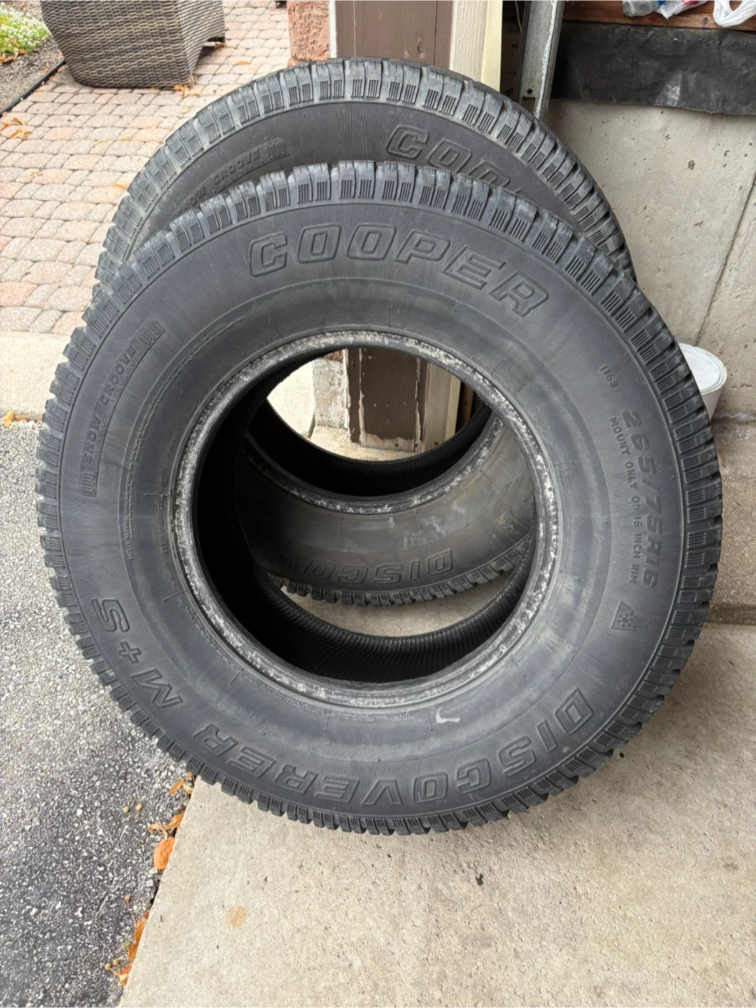 Selling a set of Cooper Discoverer M+S tires. The size is 265/75R16. They have a snow groove design. Great for a season P/U Brampton $100 for both