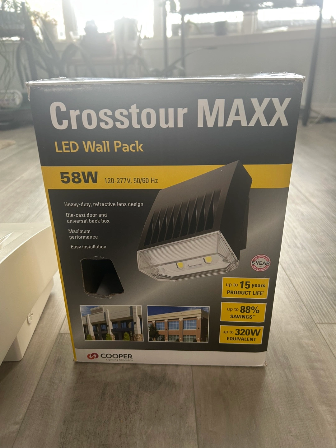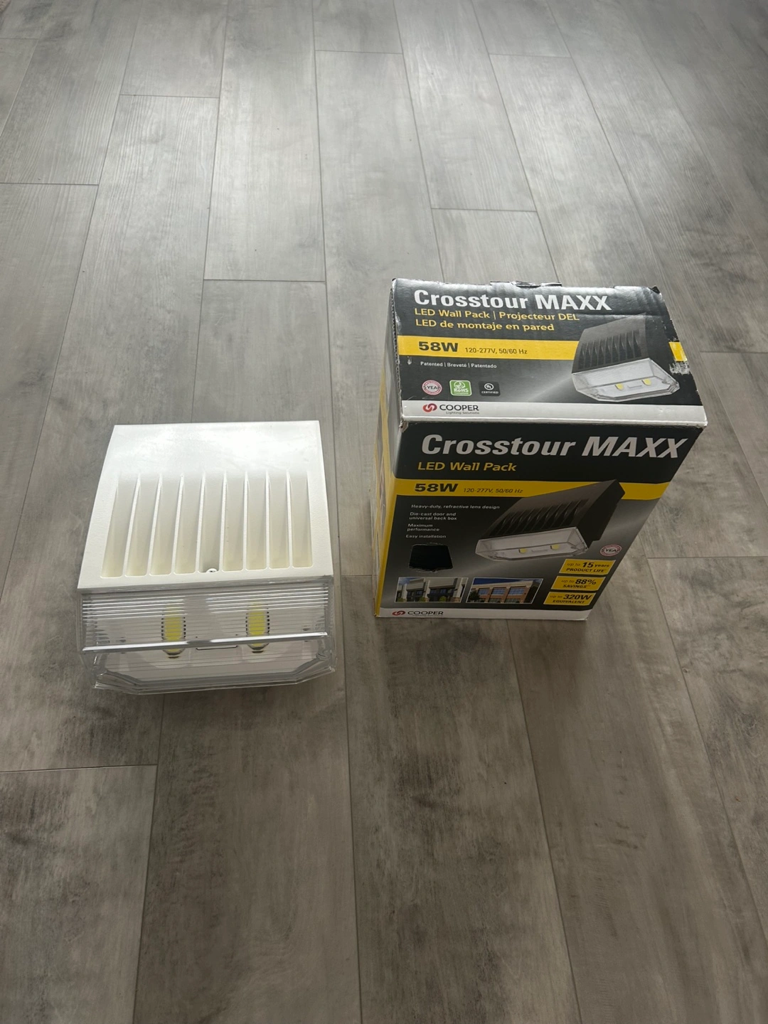 58W LED wall pack light. Heavy-duty, easy installation. Maximum performance. Includes die-cast door and universal back box.