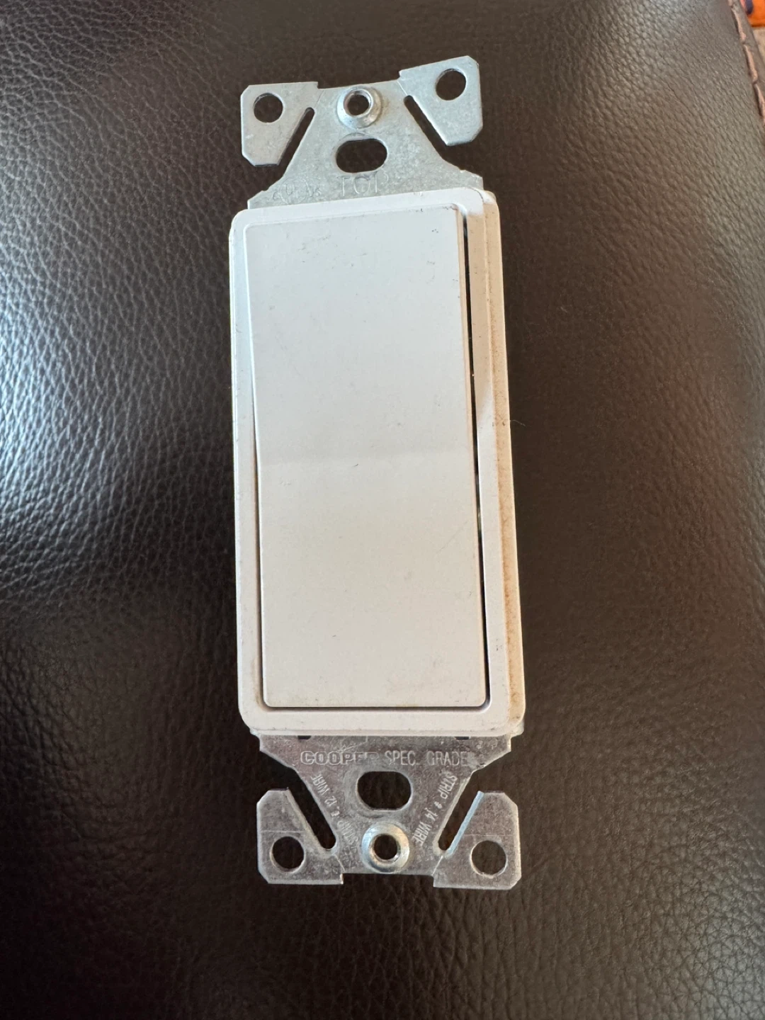 Selling a Cooper Spec Grade light switch. It's in great condition and ready to be installed. Perfect for any home renovation project!