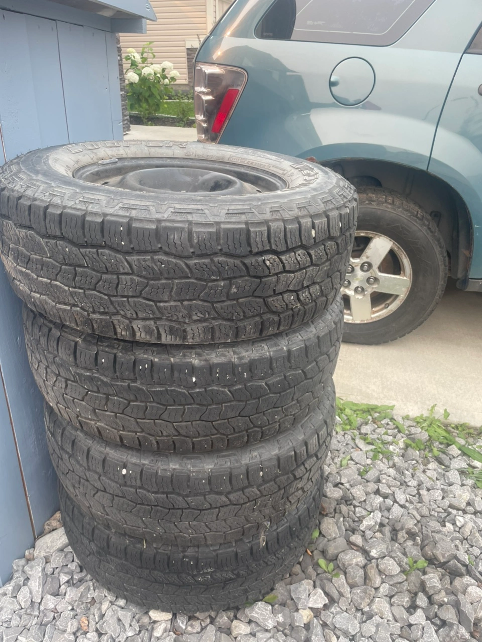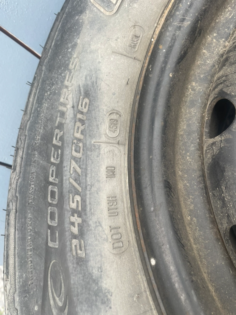 Give away a set of Cooper Tires, size 245/70R16. They are marked M+S and should be mounted only on 16 inch rims.
