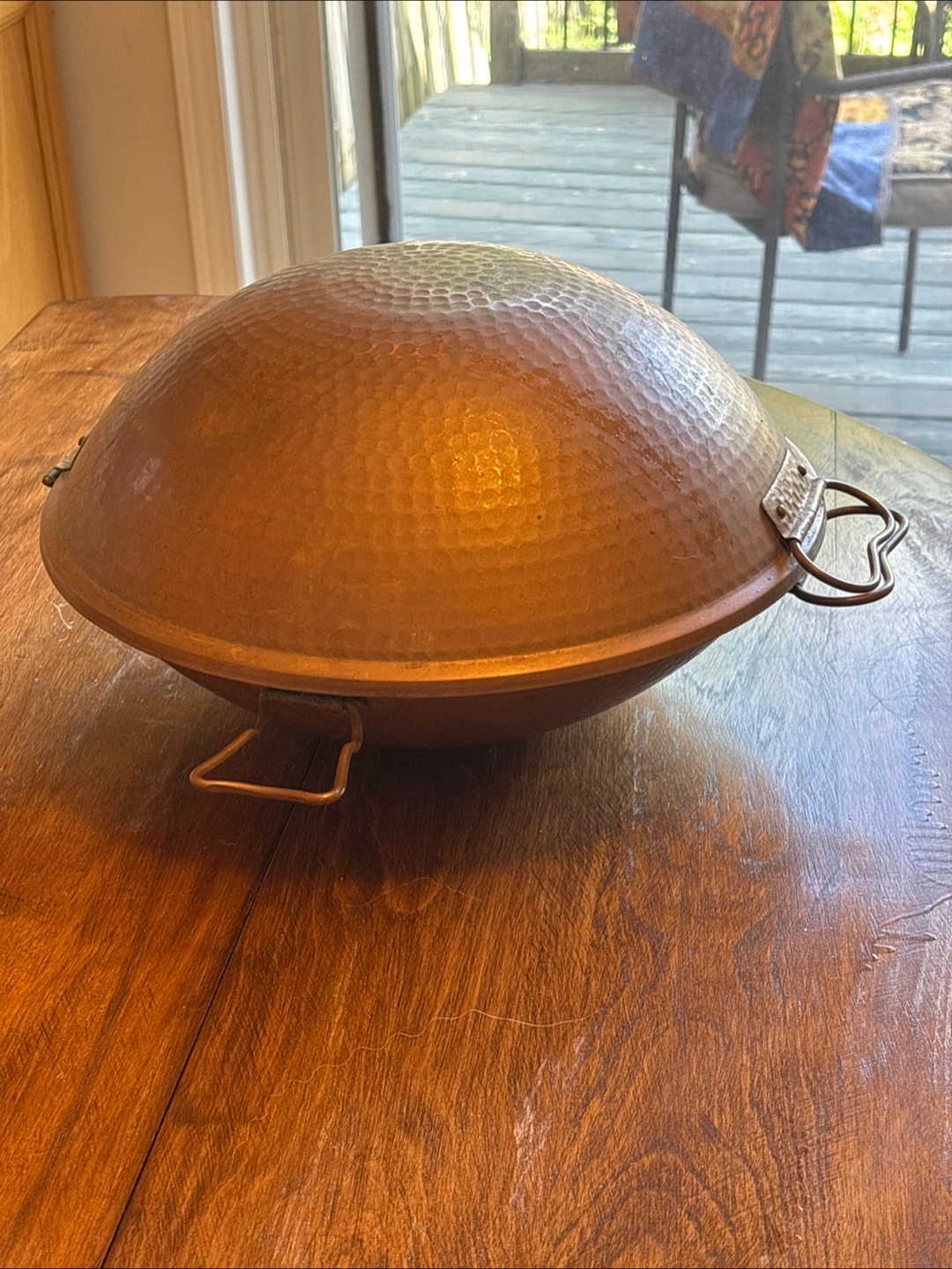 I bought this Cataplana in Portugal. Made of copper and perfect for the chefs out there. Create a delicious and healthy seafood dish for friends and family. Experience the flavours of Portugal in your own home. Put seafood, vegetables and broth, stir and set over heat, stovetop or grill, let it simmer and add herbs then serve . This meal will be your signature dish loved and remembered by everyone.