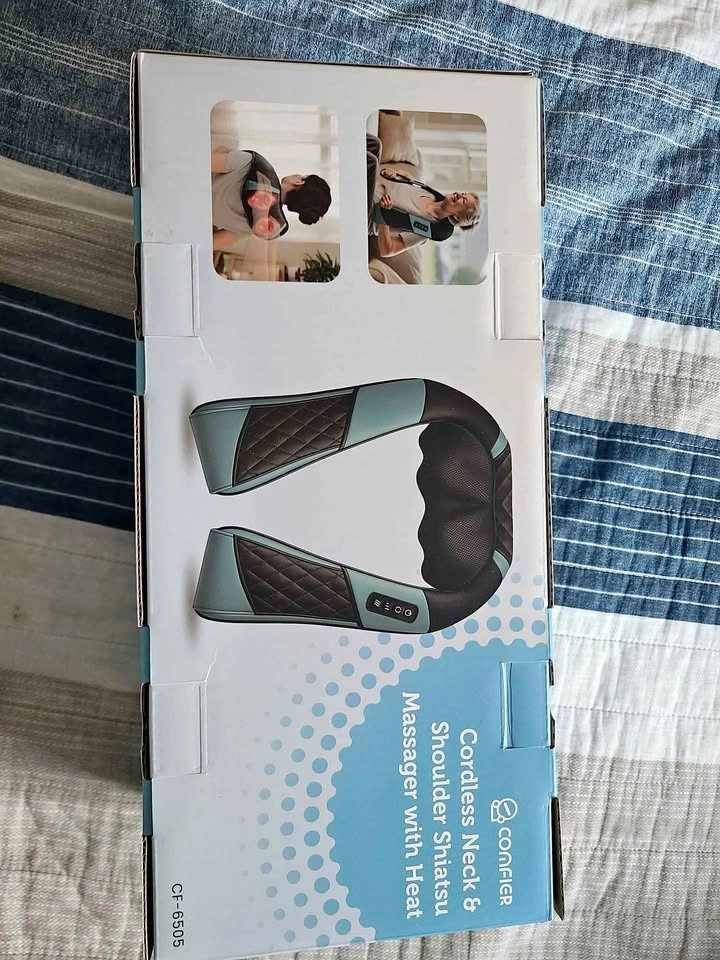 Barely used — works perfectly and comes fully charged. This wireless, rechargeable neck & shoulder massager is perfect for home, office, or travel. Enjoy deep relaxation anywhere without being tied to an outlet. ✨ Features: 🔋 Cordless & Rechargeable: 2200mAh battery gives up to 1 hour of use after a quick 4-hour USB-C charge. 💪 3D Deep Tissue Kneading + Gentle Heat: Relieves neck, shoulder, and upper back tension with adjustable intensity. 🧍♂️ Ergonomic U-Shape Design: Fits perfectly around neck, shoulders, waist, or legs. 🧵 Premium Materials: Soft PU leather and breathable mesh—comfortable and easy to clean. 🔇 Quiet Motor + Simple Controls: Relax while reading, watching TV, or working. 🔥 Smart Safety: Auto shut-off and overheating protection for worry-free use