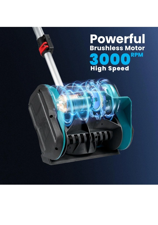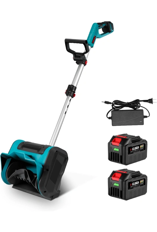 Lightweight and compact snow shovel. Features an adjustable handle, powerful brushless motor, and two 6.0Ah batteries. Includes charger. Ideal for quick and easy snow removal.