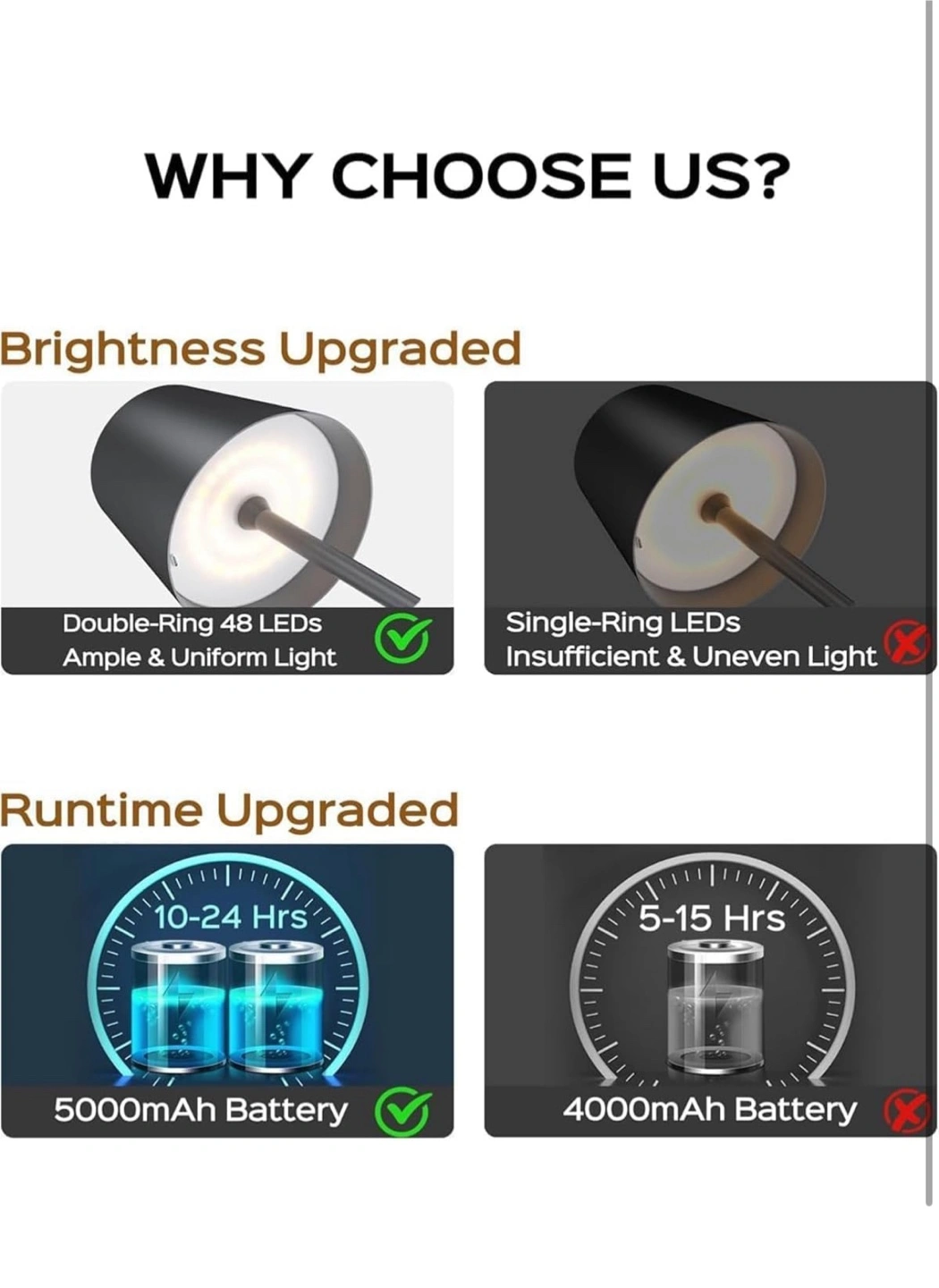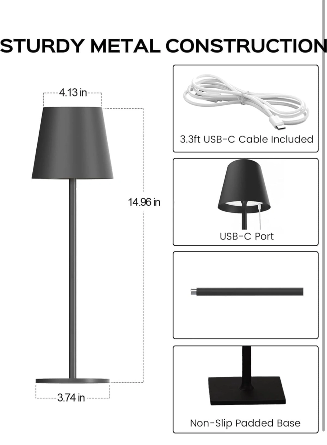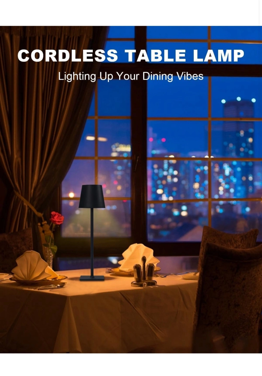Set of 2 Cordless Table Lamps, Rechargeable Lamp with 3 - Color Stepless Dimmable, IP54 Waterproof, Ideal for Outdoor Patio, Bar, Restaurants, Bedroom & Bedside