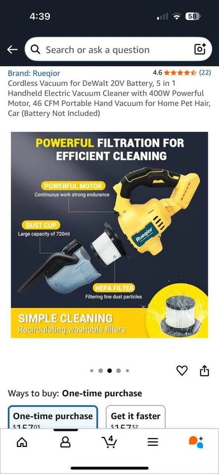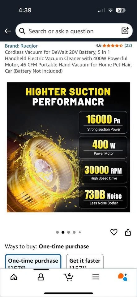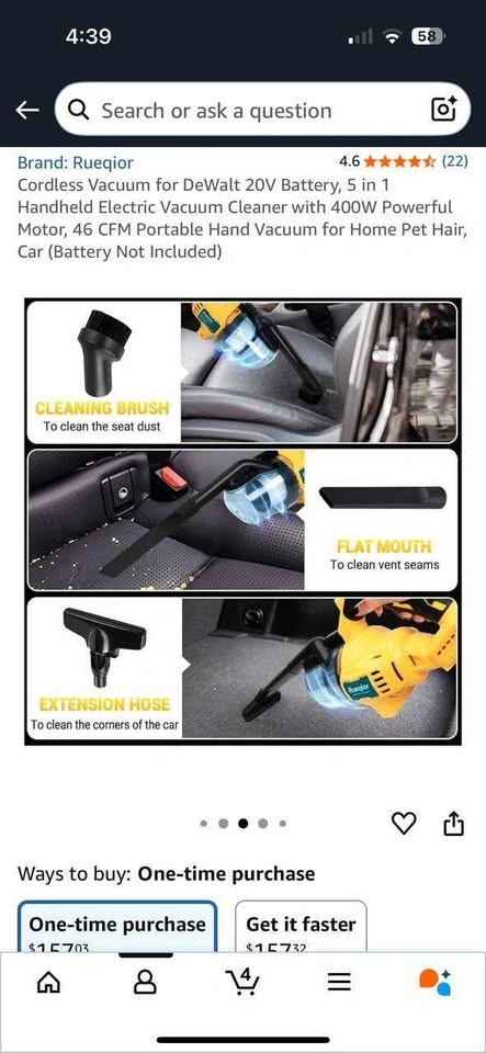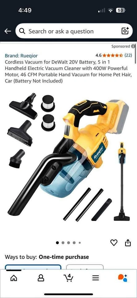 Cordless Vacuum 20V Battery – 5 in 1 Handheld Vacuum (Battery Not Included) Powerful 400W motor, 16,000Pa suction, multiple attachments for car, pet hair, and home cleaning. Compact and easy to use. Pick up in Mahogany SE