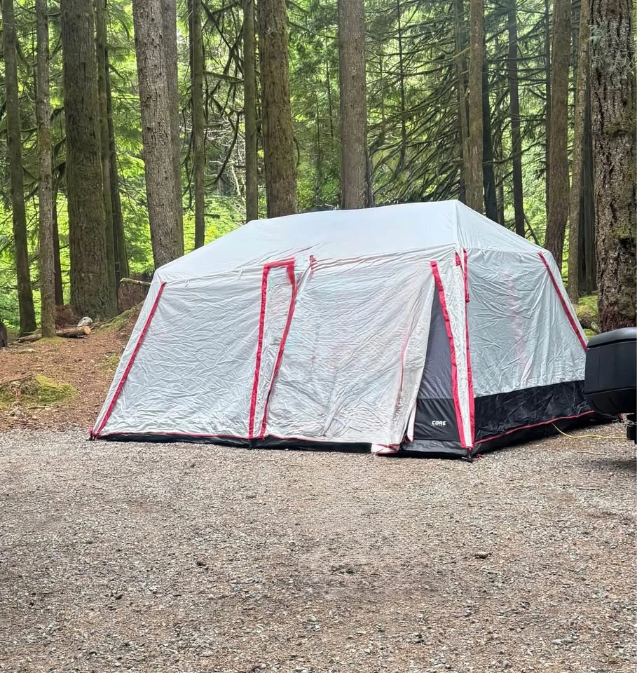 Enjoy camping the easy way with this CORE 10-Person Lighted Instant Cabin Tent. Spacious, bright, and ready in minutes — perfect for families or group trips. Features: • ⚡ Instant 2-Minute Setup – poles are pre-attached to the tent. • 💡 Built-In LED Lighting System – soft, adjustable lighting for evenings. • 🏕 Sleeps up to 10 people comfortably. • 🛏 Fits up to 4 queen air mattresses. • 📏 78” center height – plenty of headroom. • 🌧 Weather-resistant fabric with sealed seams. ✨ Condition: Used a few times, like new. 📦 Includes carry bag, stakes, and rainfly. 💵 Reason for selling: Moving out of country. 📍 Pickup: 16th & Kingsway, Burnaby.